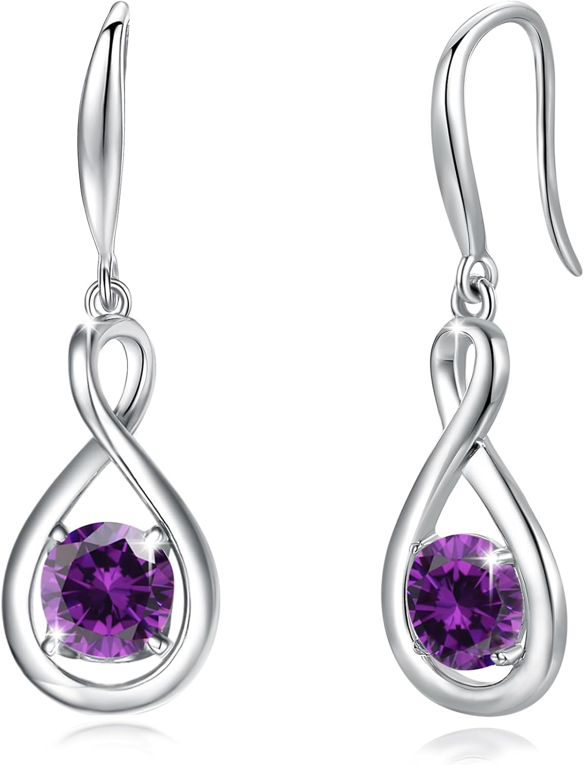 FANCIME Dangle Drop Earrings 925 Sterling Silver Dainty Infinity Round Gemstone Birthstone Jewelry Birthday Gifts for Her Women