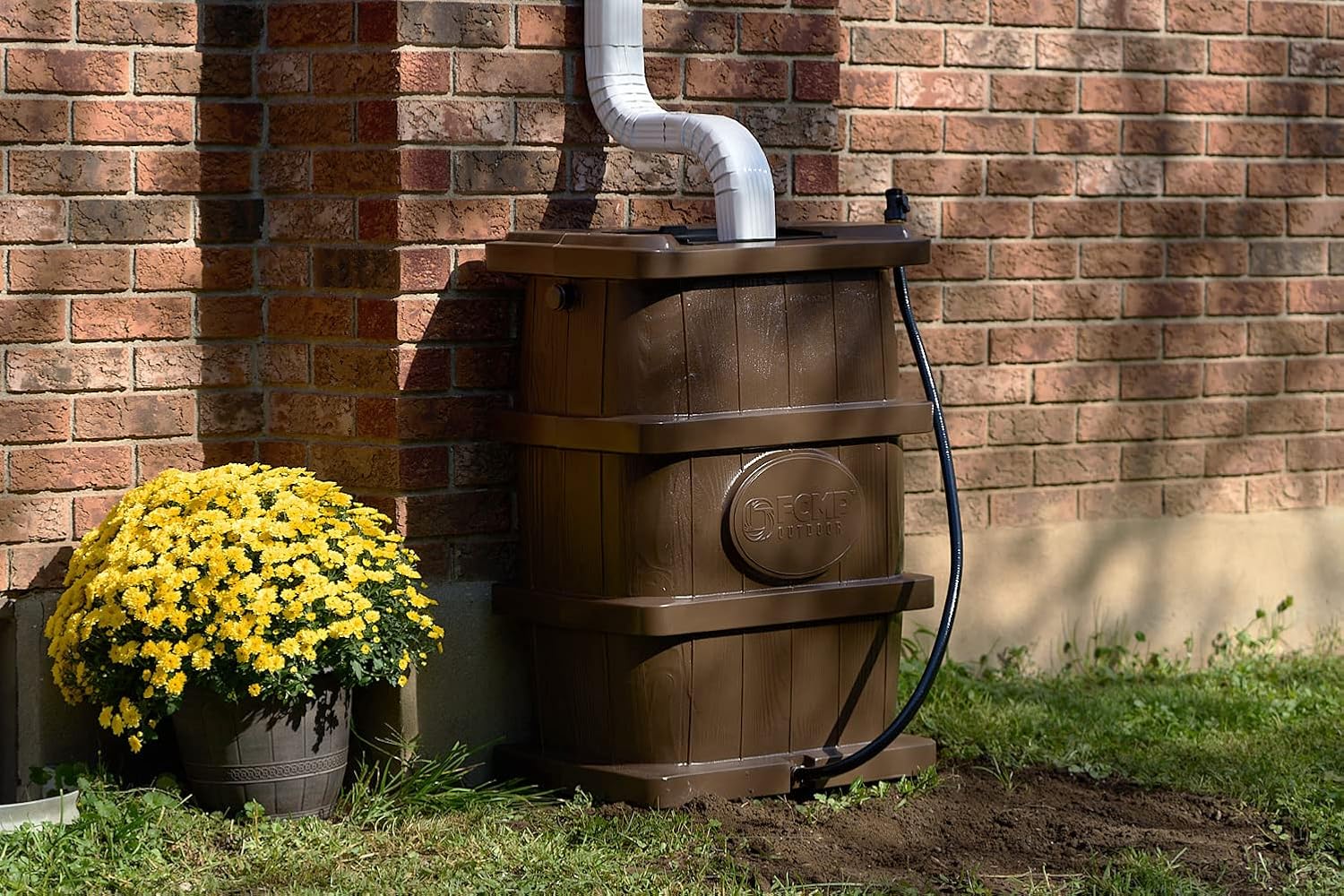 11 reviews for FCMP Outdoor Slim Line Design 45-Gallon Wood Grain Outdoor Home Rain Water Catcher Barrel Flat Back Container with Spigots and Mesh Screen, Brown