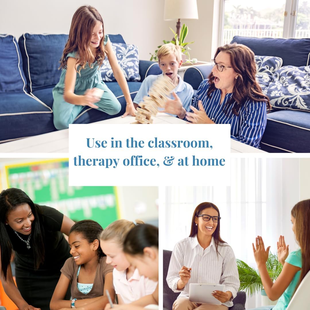 Trusted by Therapists, Teachers, and Parents: This tumbling tower emotions game is a valuable tool as an anger management toy, promoting emotional growth through play. Used in CBT games for kids and teens, therapy sessions, in classrooms, and at home, it encourages thoughtful discussions and healthy emotional expression.