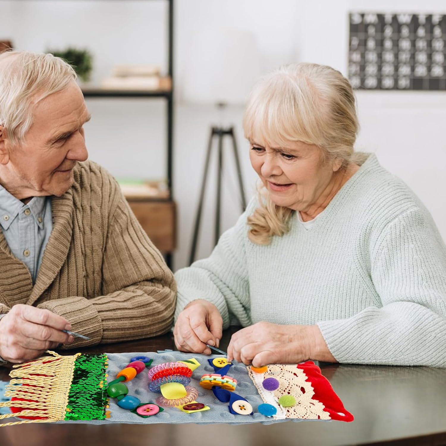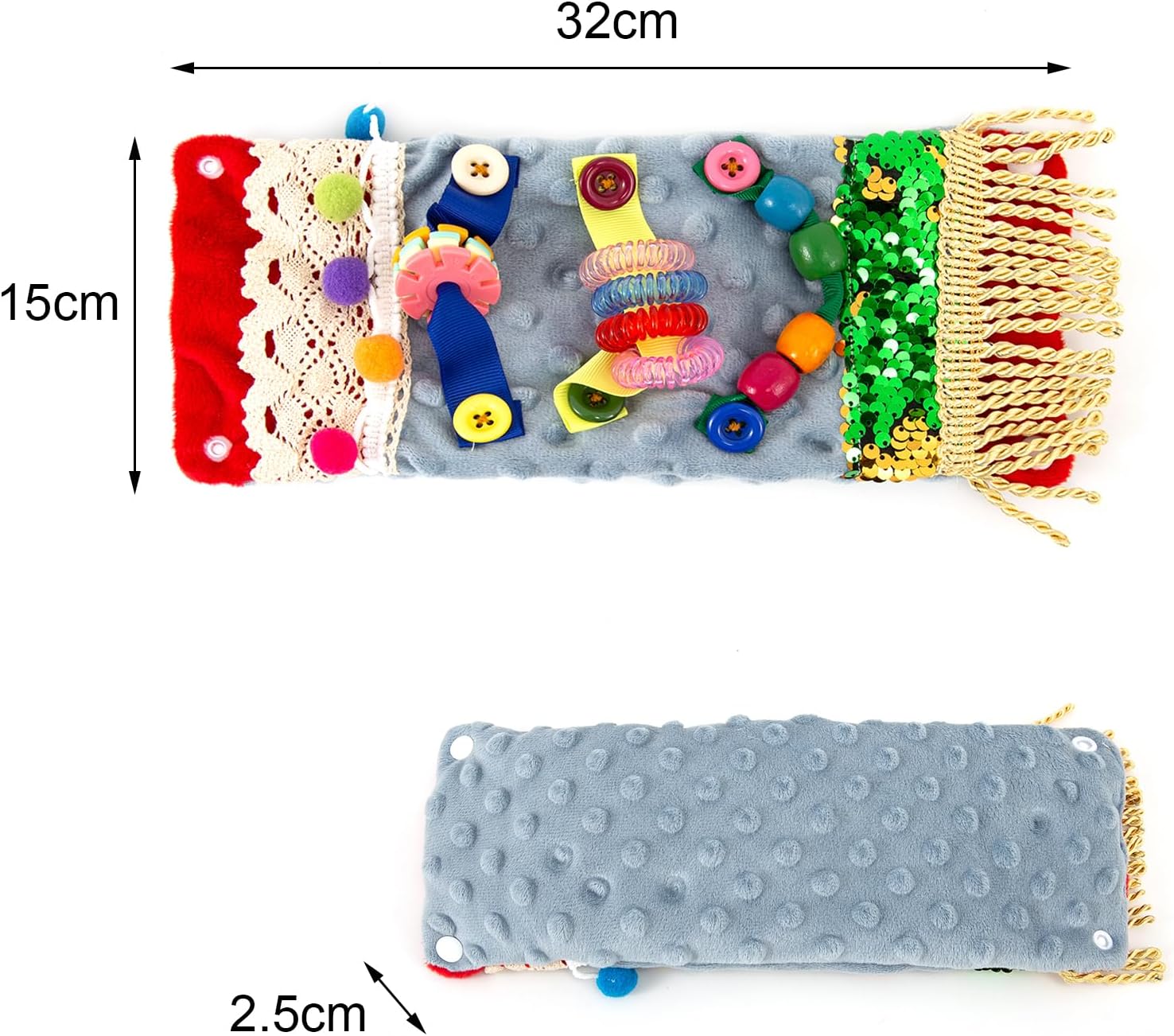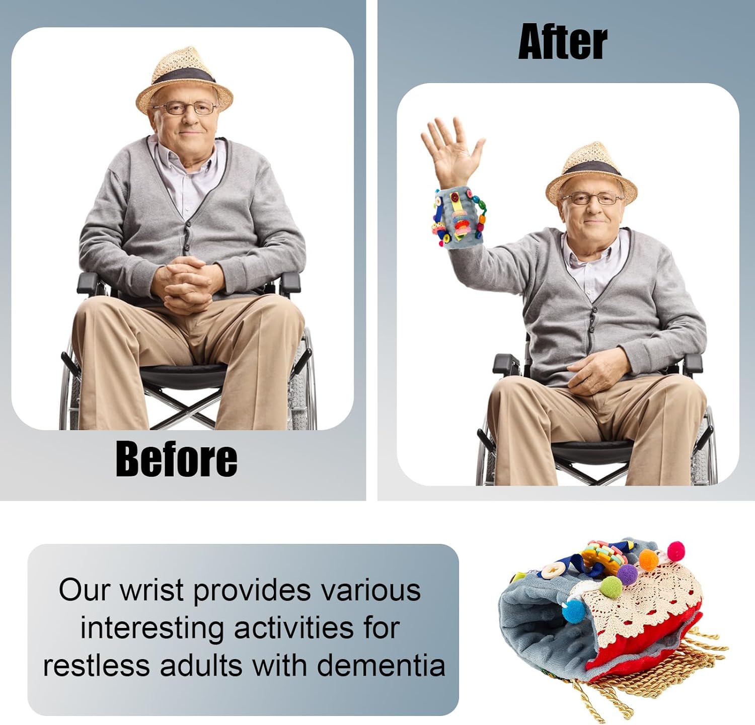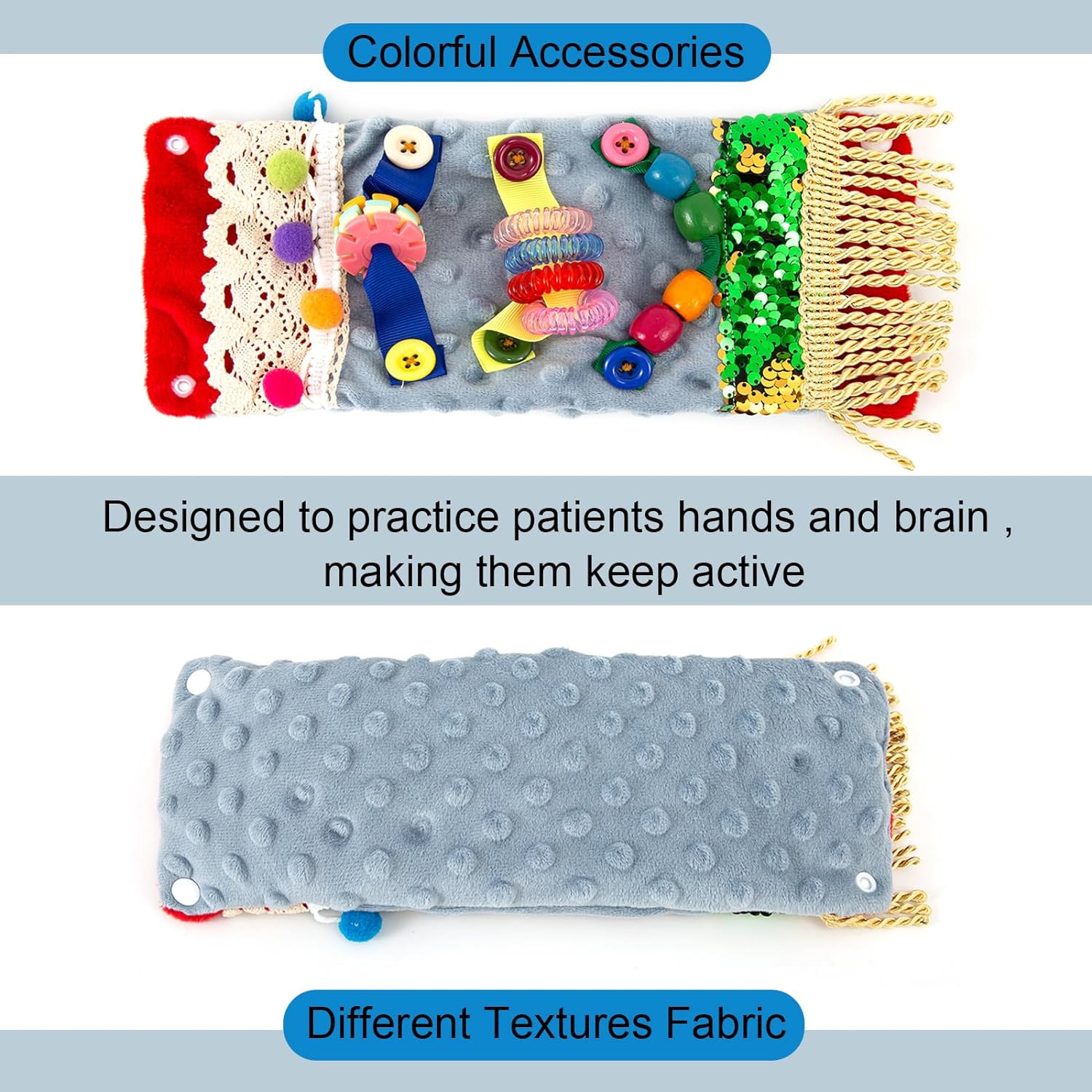 【2 in 1 Design】the fidget toy adopt 2 in 1 design,buckle up to make a wrist cuff for one people use;unlocking the buckle is a fidget mat,play with your loved.Nice fidget toys for dementia adults.