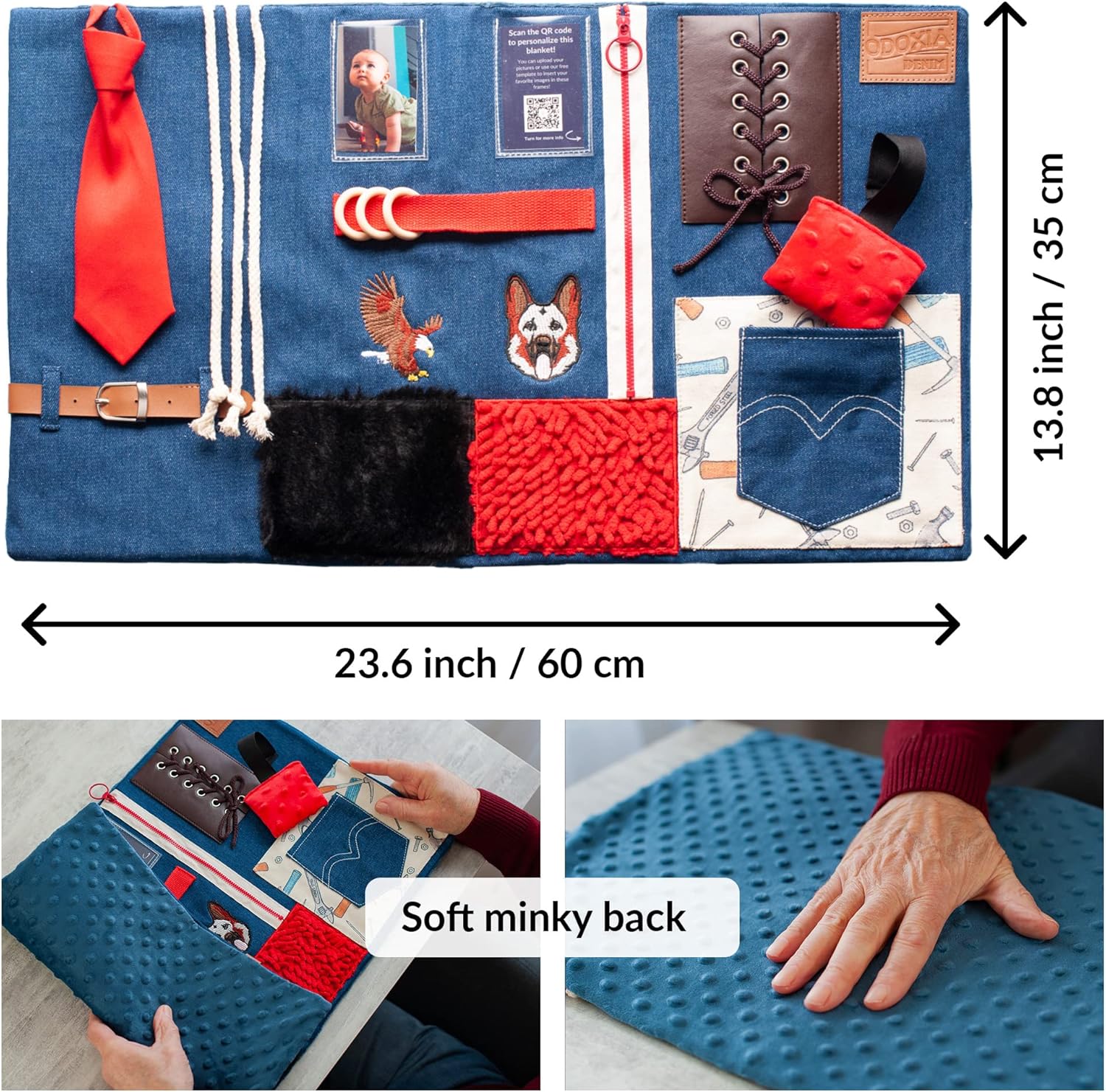 PERFECT GIFT – Our fidget blanket is carefully designed to include various difficulty levels, which makes it ideal for seniors in all different stages of dementia. The different activities will help to relieve anxiety and keep hands busy in a safe and calming way. The photo frames allow you to personalize the blanket exactly in the way you want!