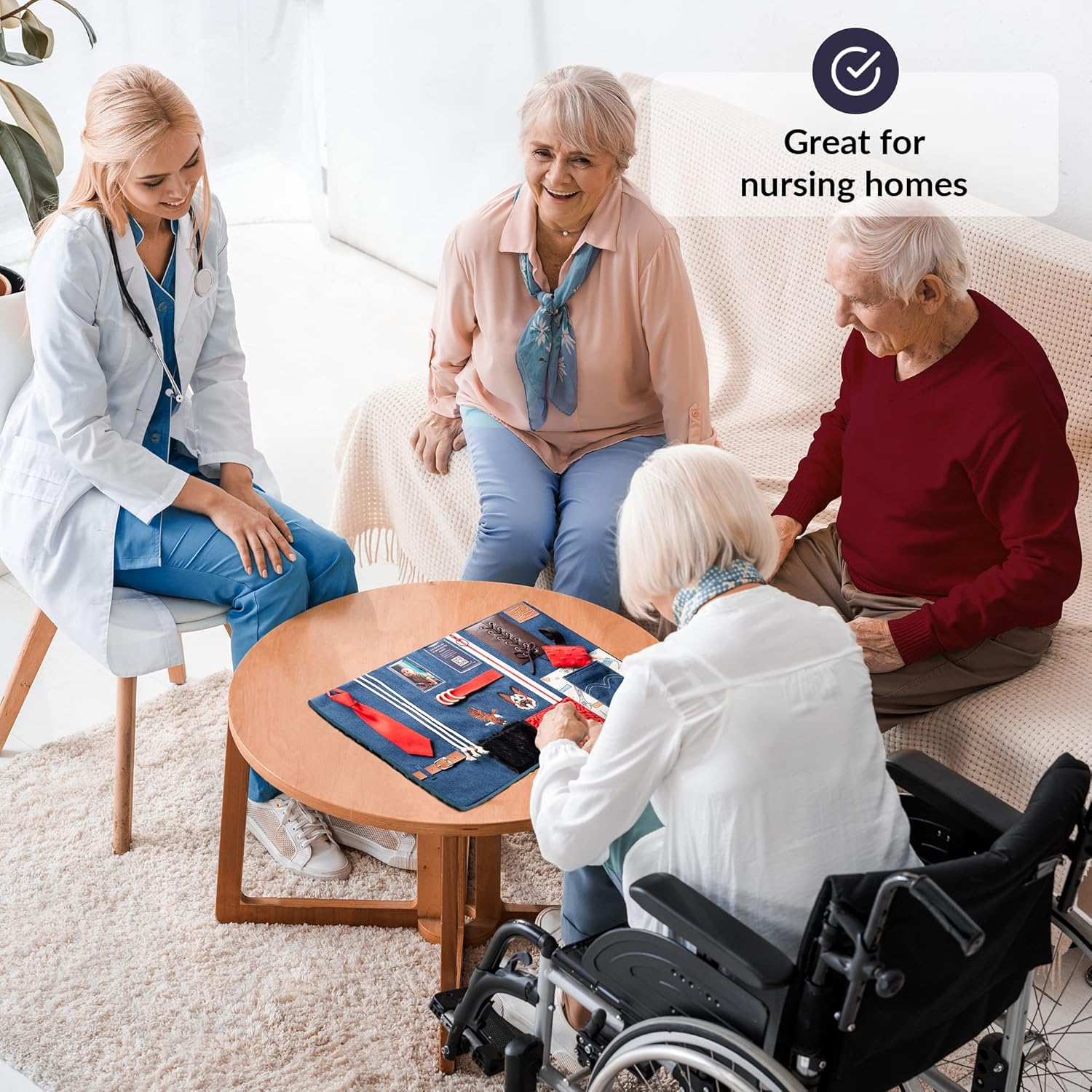 HELPS TO RELAX – Seniors with Alzheimer’s or dementia can become anxious or nervous when they don’t have something to do with their hands. This fidget blanket for adults with dementia provides a variety of fun activities and will keep restless hands occupied!