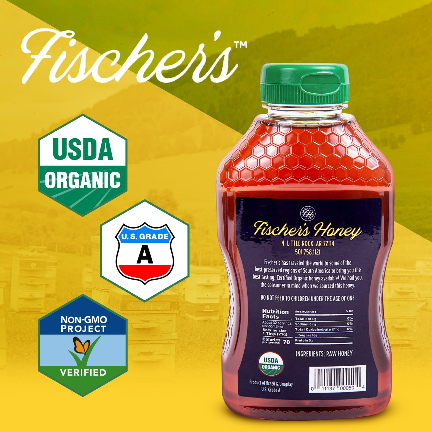 Raw Organic Unfiltered Honey — Fischer’s 100% Organic is raw, unfiltered, and unprocessed honey. We offer completely pure honey, USDA Organic Certified, with no additives, syrups, or flavors. It comes in a convenient 24 oz squeeze bottle