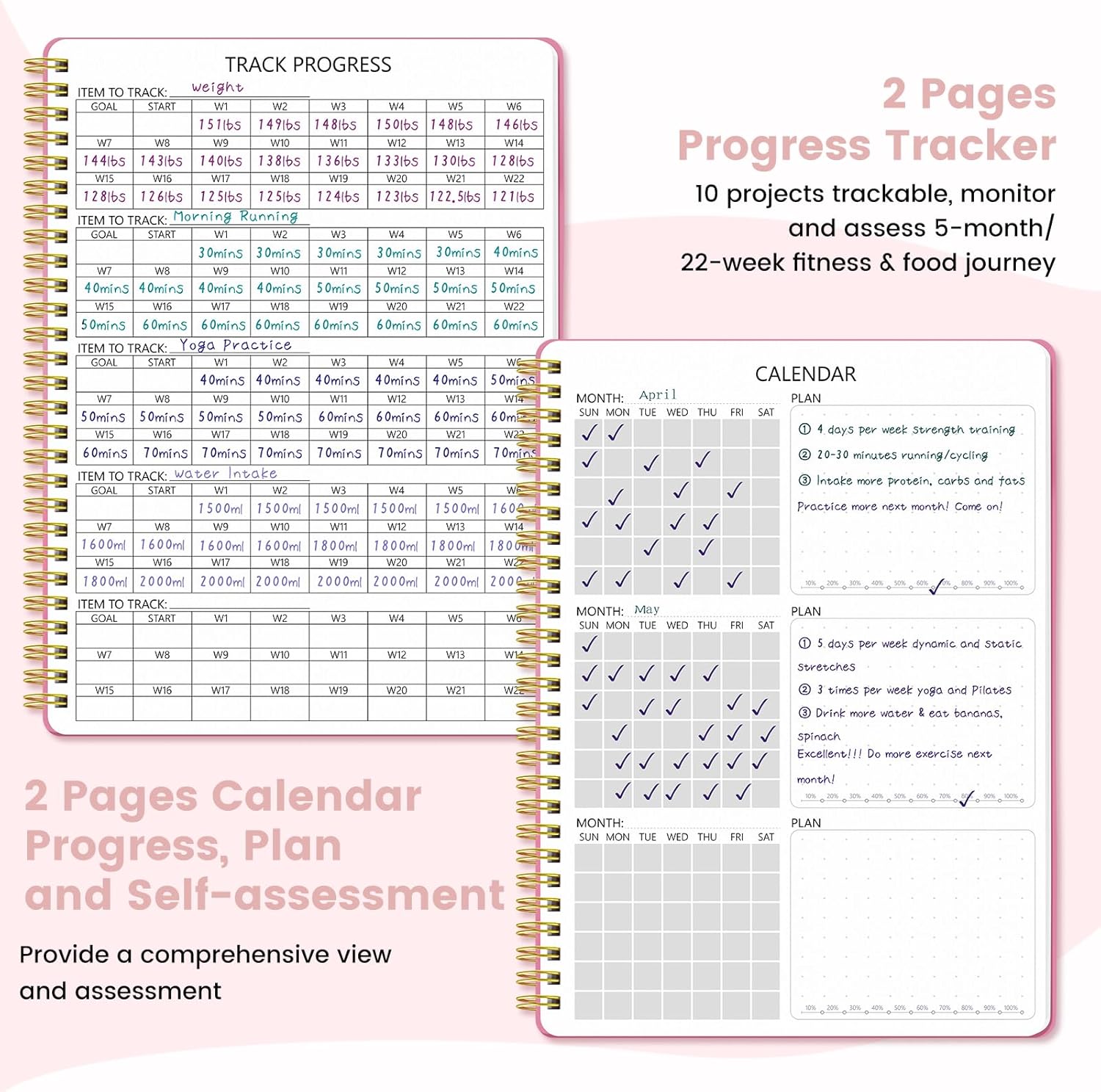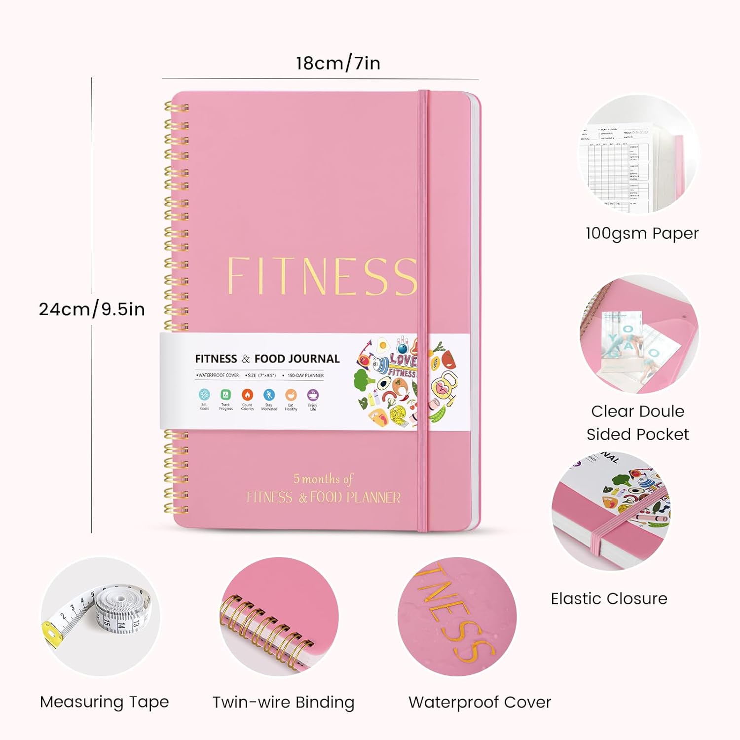 🏃♀️150-day/5-month food and fitness journal with measuring tape: this fitness journal allows you to record up to 150 days of fitness and diet data, ensuring you stay on track with your health goals. The measuring tape helps you to track your body dimensions and detailed tracking system helps you monitor progress and make necessary adjustments to your routine