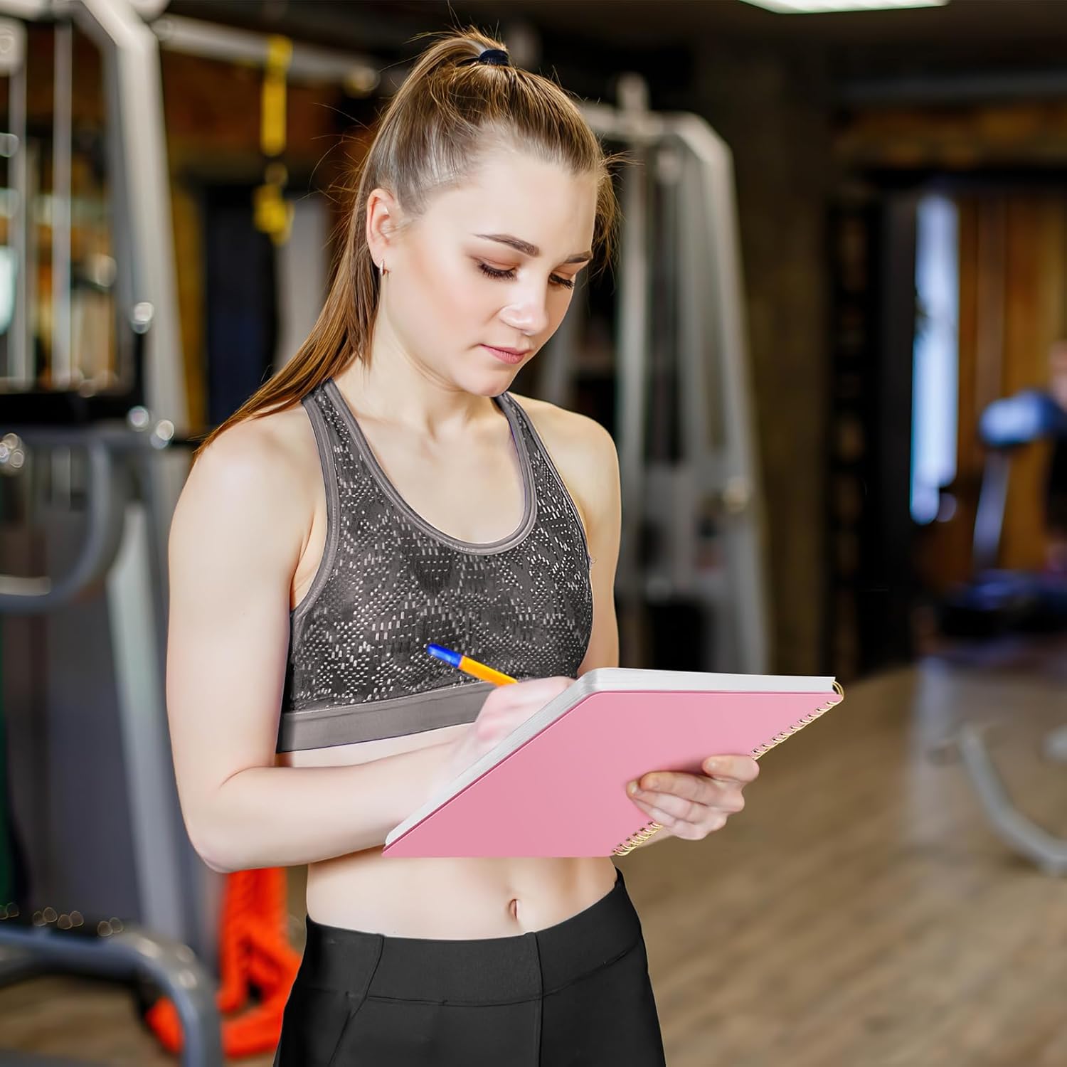 🚴♀️User-friendly design, durable material: the 9.5” * 7” fitness journal for women is easy to carry and use, with a waterproof and sweat-proof PP material cover and ink-resistant 100gsm thick paper inside. The elastic band keeps the workout planner closed to keep your data private and organized. Double sided pockets are designed for cards, guidebooks, etc.