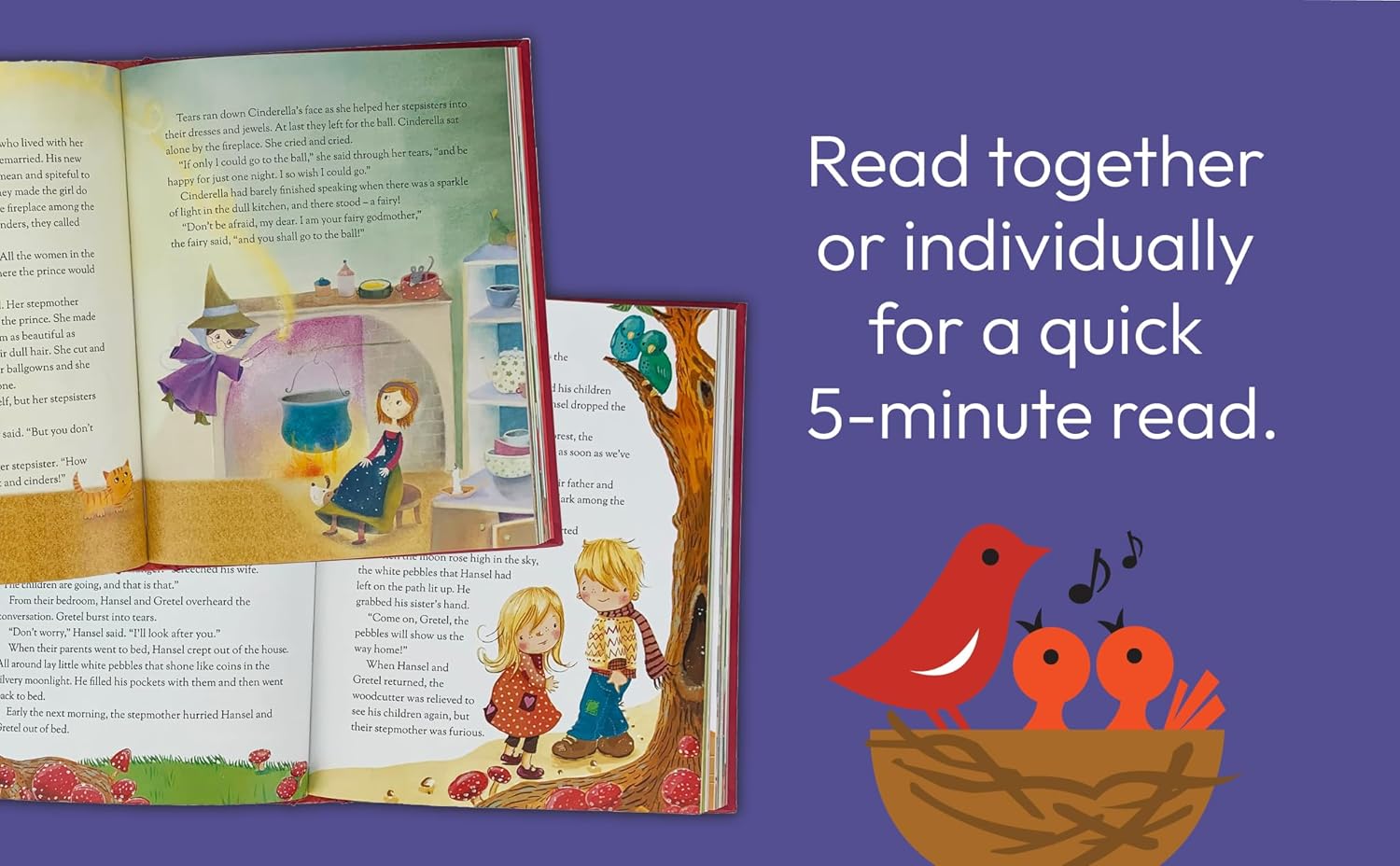 Short stories or rhymes allow adults to adjust how many stories and how much time to spend reading every day. Several stories for nighttime reading can be read together or individually for a quick 5-minute readBond with your child through family storytime and strengthen a love for books and reading. Classic stories for kids to enjoy for years! Infants, toddlers, and emerging readers will enjoy this storybook and create cherished memories with loved onesOver 50 tales and fables including classics like Jack and the Beanstalk, The Ugly Duckling, Little Red Hen, The Lion and the Mouse, Tom Thumb, and moreGorgeous illustrations and beautifully written tales will create a smile from ear to earBoys and girls can collect all titles in the Cottage Door Press 365 Treasury Book Collection and other storybook sets with treasured favorites