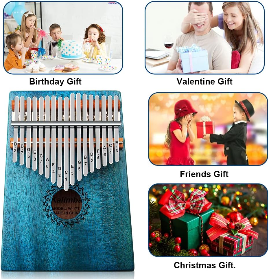 FLSEPAMB Kalimba 17 Key Thumb Piano with Mahogany Wood Portable Mbira Finger Piano Gifts for Kids and Piano Beginners Professional (Blue)