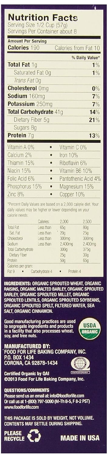 Customers find this cereal tasty with raisins providing sweetness, and appreciate its health benefits, with one customer noting it’s loaded with vitamins, minerals, fiber, and protein. The cereal is made with sprouted grains and contains no added sugar, making it a nutritious choice. Customers find it filling, easy to digest, and good value for money.