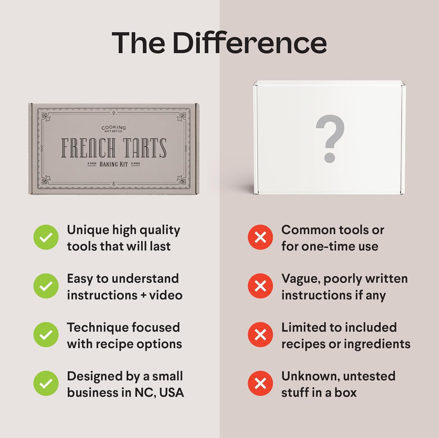 I got the kit for a gift for my wife this is what she had to say:For a long time I have wanted to attempt making tarts but was always wary, as I felt it was too difficult. The kit made the process easy to understand and gave me the confidence to make them.For starters, the kit came with all the essentials that are needed for making tarts. While am an avid baker, I’ve never bought a candy thermometer and haven’t realized how much easier it makes baking, until I used it to make the meringues.The baking balls, are great, strong, and perfect for the tarts. They do seem very dusted (I don’t know if that’s something that can be changed) and required cleaning a number of times, so as to avoid the dust getting all over the tart dough.The kit came with the tart instructions. By far one of my favorite! The instruction were clear, direct, and easy to work with. I love that the “ruler” and measurements were on the instruction page!! This makes it easy to access and it meant I didn’t have to dig around to figure out the size of baking paper or how long to make the strips of dough. Additionally, it meant one less item that needed to be out on the counter while I was working and one less item to have to think about. If I could make a small suggestions, it would be to use a different paper for the instructions, as I’ve noticed the paper getting oil stains from being pushed against the dough, and that’s going to cause some wear on the paper eventually.Lastly, the recipes were amazing. I have made the chocolate coffee tart (pictures attached), as well as the lemon tart; they were Clear, concise, and delicious!!