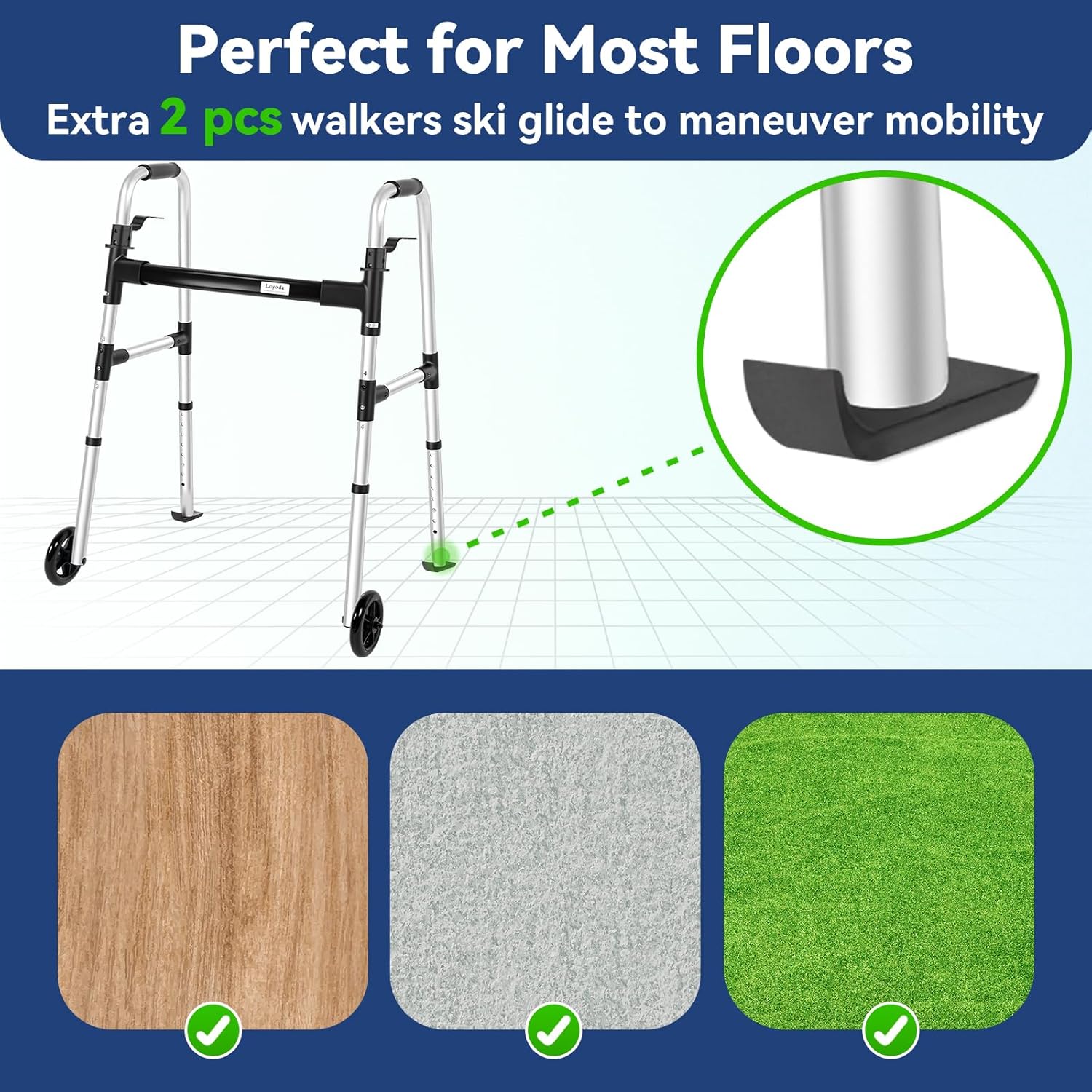 FSA or HSA Eligible: The Loyoda walker supports up to 350 lbs, enhancing mobility for those needing extra assistance. Its sturdy aluminum frame is lightweight yet durable, providing reassurance for long-term use