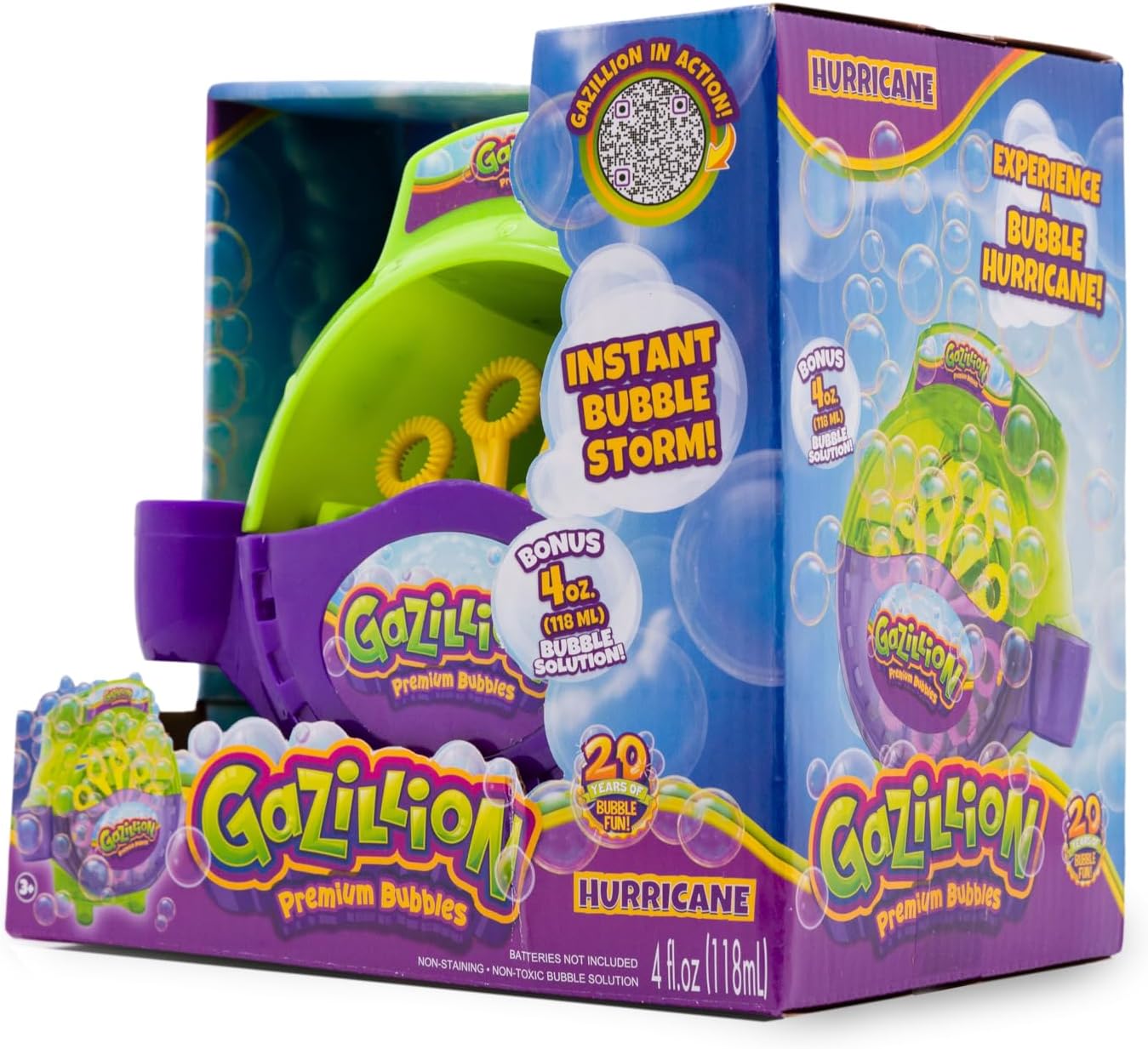 Gazillion Bubbles, Hurricane Bubble Making Machine – Portable Bubble Maker – Instant Bubble Creation – Outdoor Toy for Kids – 4 oz. Bubble Solution Included – Ages 3+