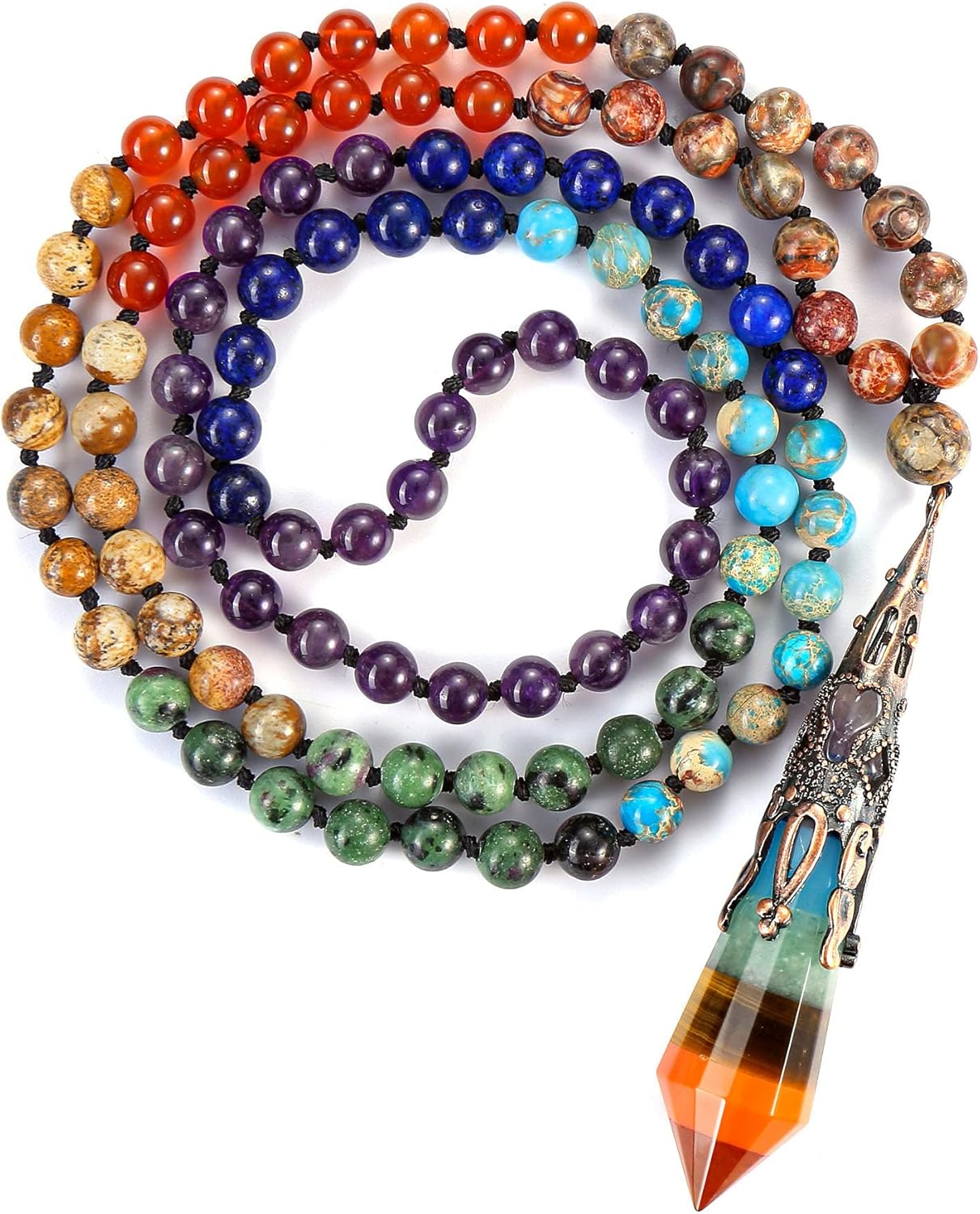 11 reviews for GEHECRST Natural 7 Chakra 108 Mala Prayer Beads Necklace with Reiki Healing Crystal Pointed Pendant 6mm Gemstones Beads Necklace Mens Womens Jewelry for Meditation, Protection