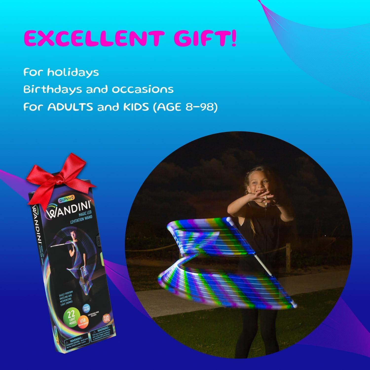 Glow.0 Magic Wand Collapsible LED Levitation Wand – USB Rechargeable Floating Wand – LED Light Wand with 22 Color Light Modes – Patented, Expertly Balanced LED Flow Wand Levitation Stick