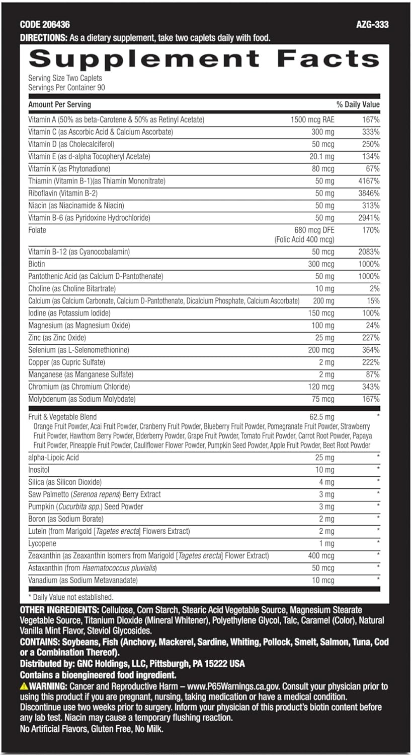 GNC’s premium multivitamin is formulated for absorption with high potency, time-released nutrients to ensure you receive a steady supply of vitamins and minerals. In a ground-breaking clinical study, GNC’s premium multi blend resulted in improved nutrient levels, working even better than a basic multi.*