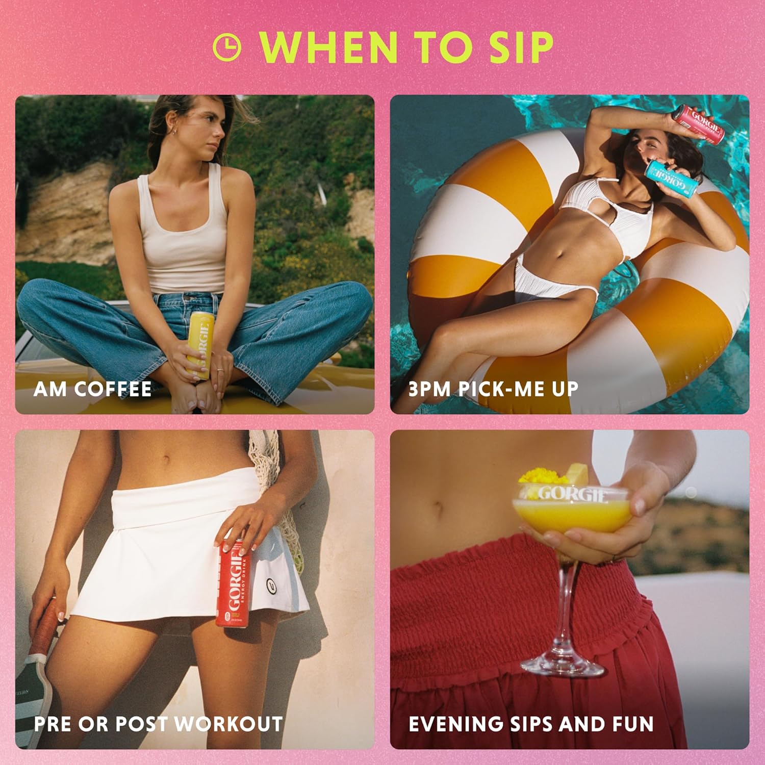 MIX IT UP: Our bevs have a playful side too! GORGIE’s light and natural flavors make them a great mixer for cocktails and mocktails, providing an energizing twist to your favorite drinks.