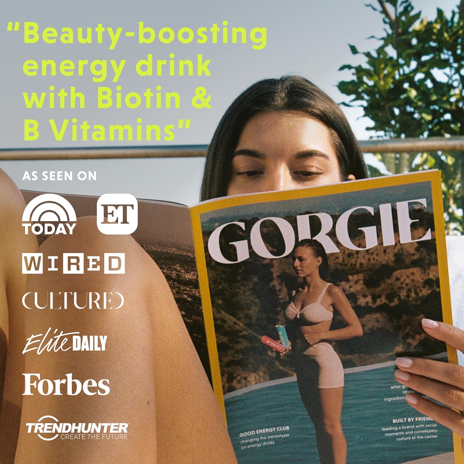 GORGIE Bestsellers Variety, Sugar-Free Natural Energy Drink Sparkling, Healthy Energy Drinks – Green Tea, Biotin, B Vitamins -150mg Caffeine, Vegan, & Low Calorie (Pack of 12)