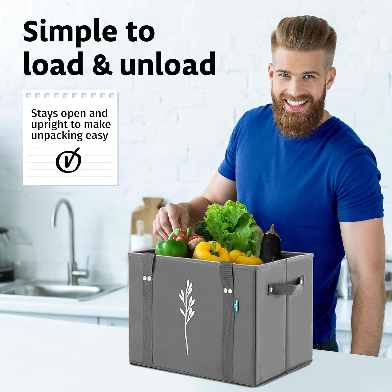 HEAVY DUTY – Our grocery bags are strong & durable, made from non-woven fabric, and able to hold up to 65 lbs! The handles are extra strong and long to easily carry around your shoulder, making any grocery or shopping trip a breeze!