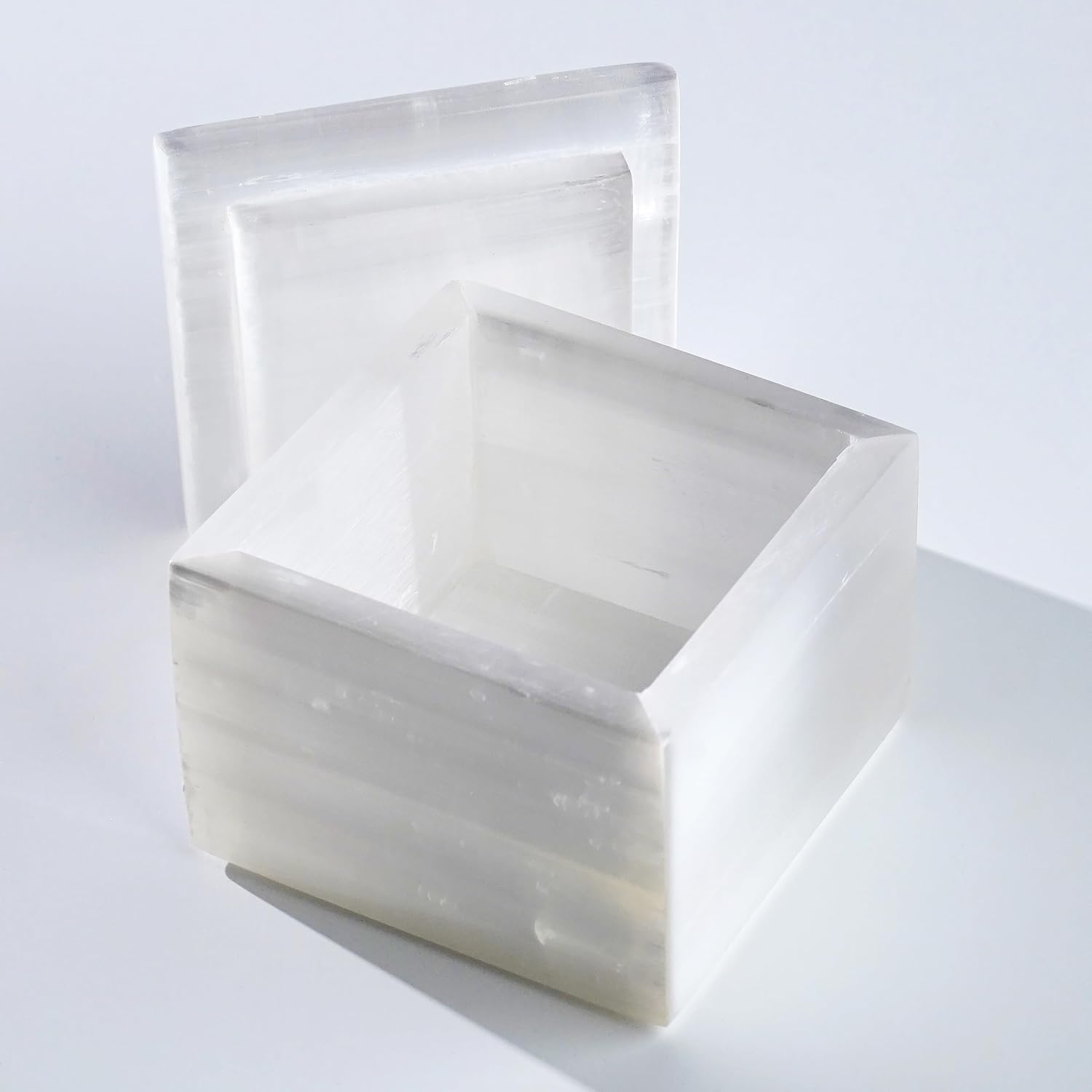 Handcrafted Natural Selenite Crystal Box – Energy Cleansing Storage for Healing Stones, Jewelry & Meditation Tools