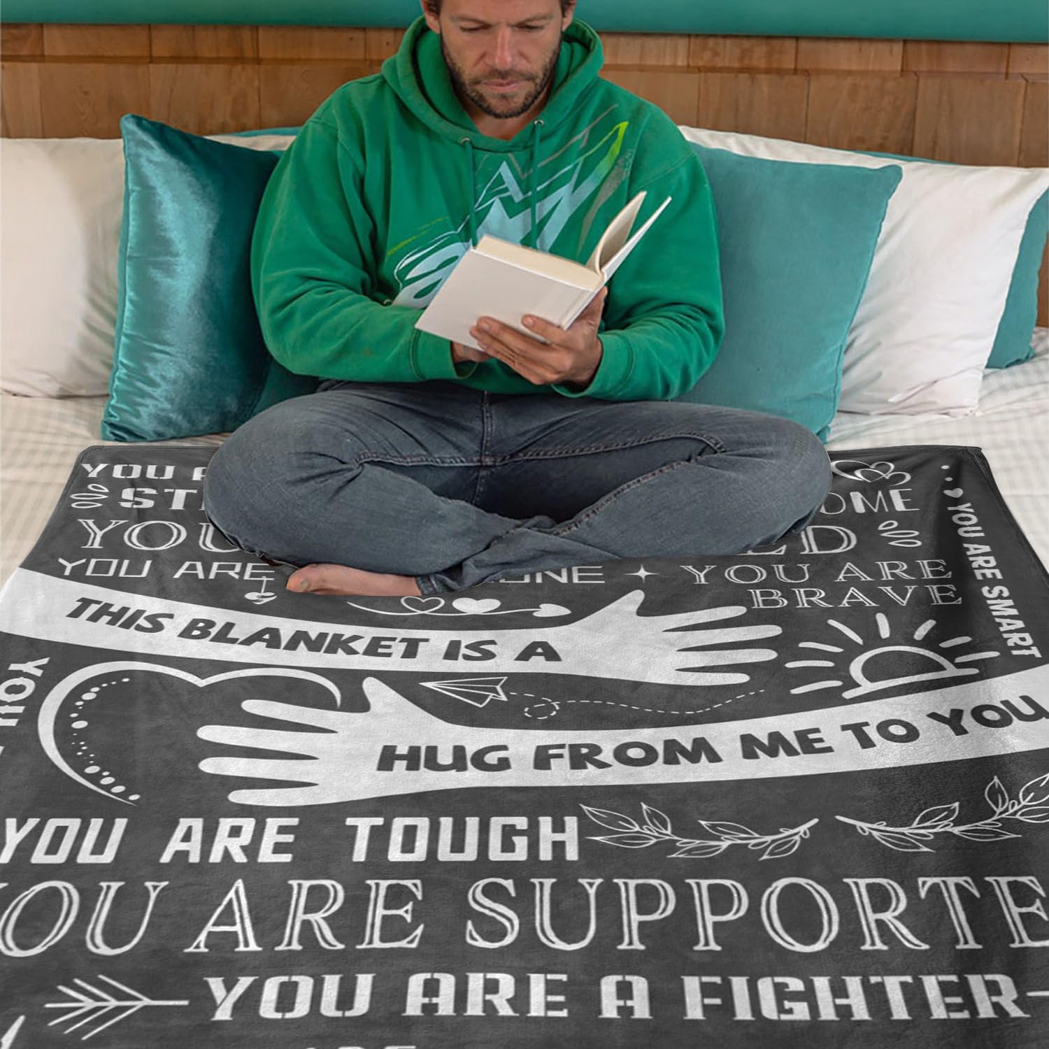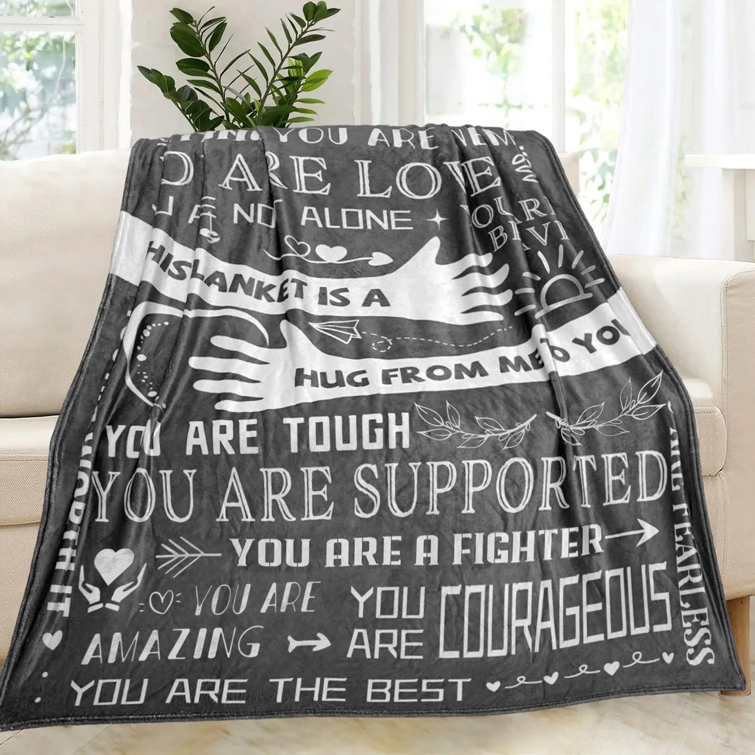 Mutifunctional Purpose: Hug blanket measures 60″ x 50″, suitable for couch, bed, sofa and living room. Inspirational gifts for men, Healing gifts, Surgery Recovery gifts, Get Well gifts for men, Chemotherapy must haves, Cancer gifts for men.