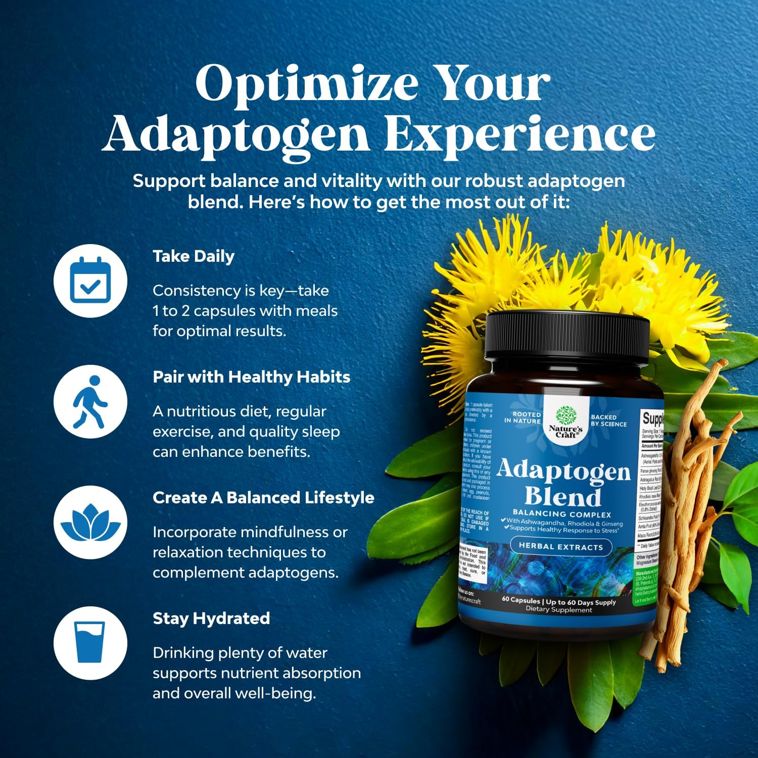 Clean Formula – We are proud to feature a wide range of globally sourced adaptogenic herbs in our vegan non-GMO formula that is made and tested in CGMP American labs for quality you can trust