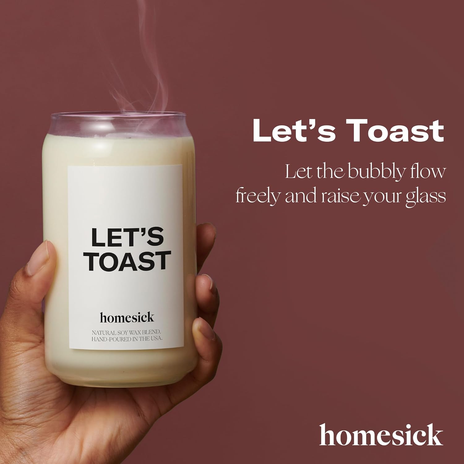 Homesick Scented Candles for Home (Let’s Toast) – 13.75 oz Long-Lasting Soy Wax Blend Jar Candle Gifts for Women & Men for All Occasions, 60-80 Hours Burn Time – Notes of Mandarin & Grapefruit