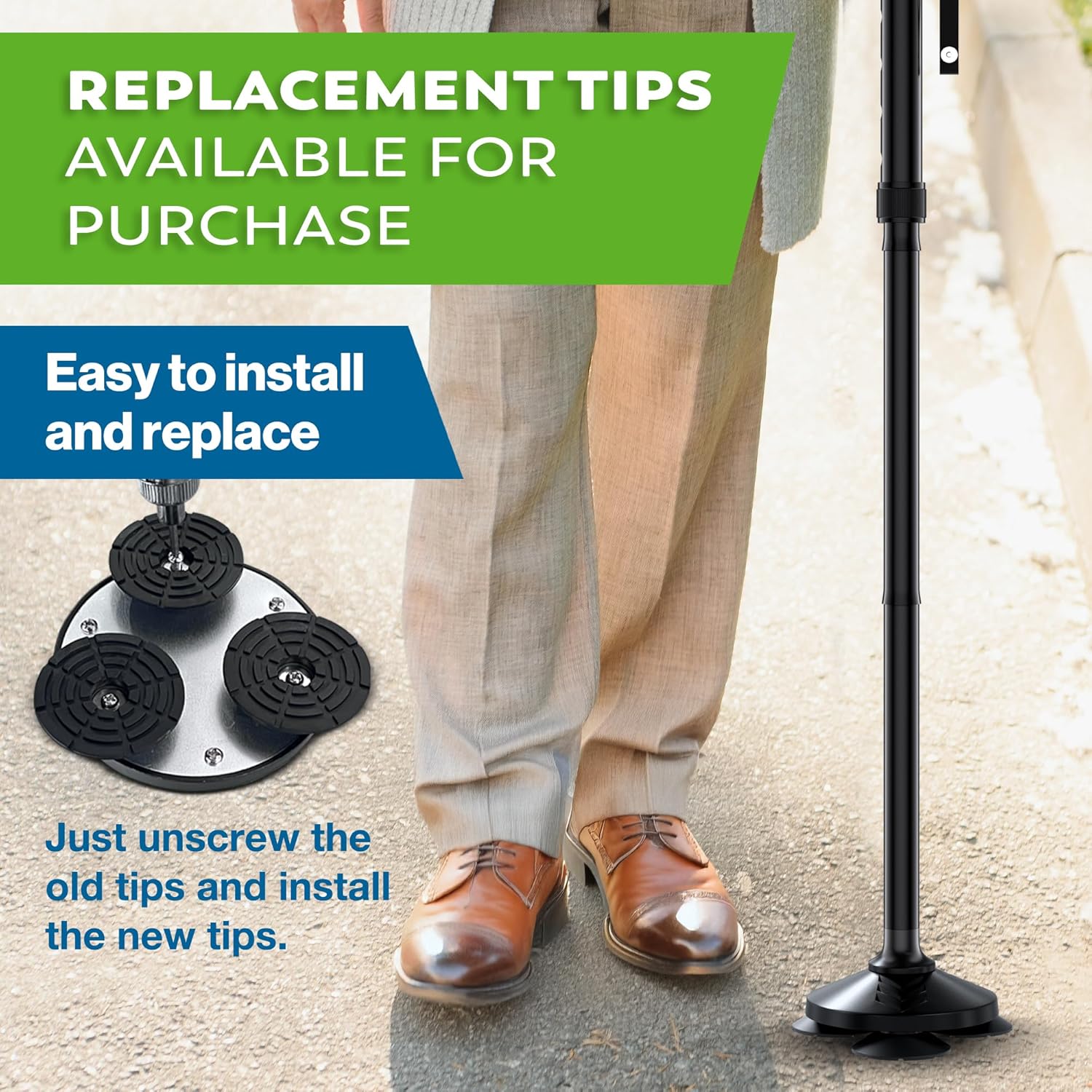 Free Standing: Extra wide, 3 tipped base allows the cane to stand firmly on its own on the 4″ base. The perfect walking cane for men and for women of all ages