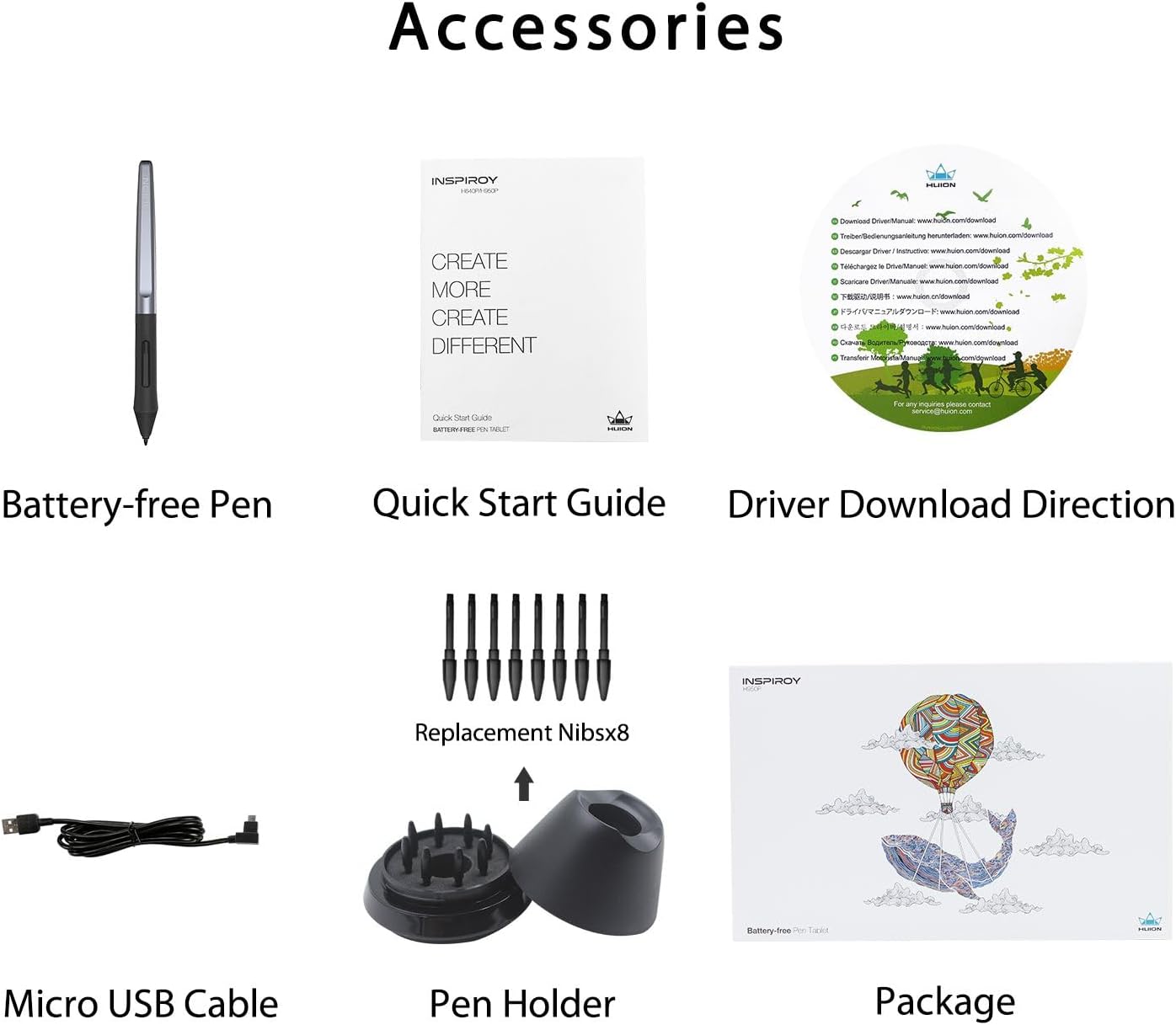 [Versatile Digital Canvas]: Huion Inspiroy H950P is not only a digital drawing pad, but also a writing pad, signature pad or track pad for your tablet, laptop and desktop. It works well with most creative softwares like Photoshop, SAI, Medibang Paint, as well as many other applications and platforms for online education or remote work like OneNote, Microsoft Whiteboard, Zoom, etc.