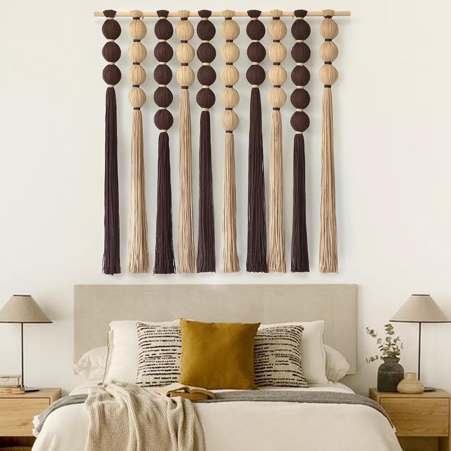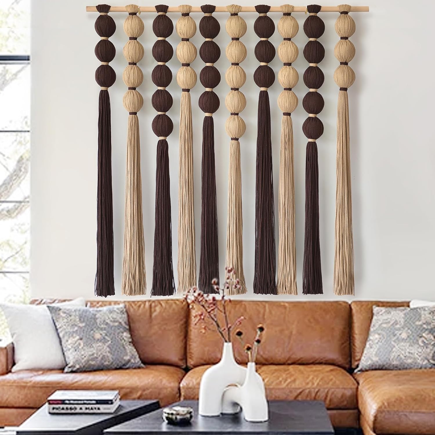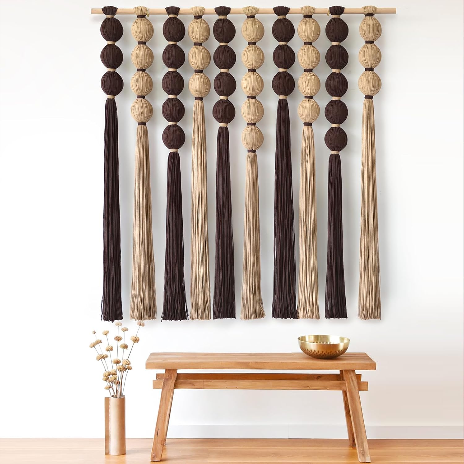 【Artistic Creation】:Handmade geometric art decor exquisite decoration is a highlight of your home space with its unique design and exquisite craftsmanship. Each ball tassel is carefully crafted from high-quality brown khaki yarn, bringing a warm and modern decorative effect to the wall.