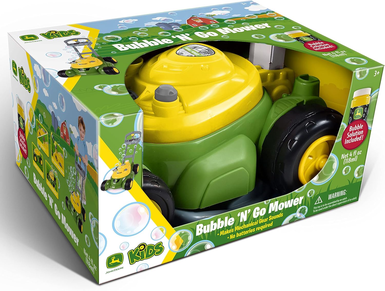 John Deere Bubble Lawn Mower for Toddlers, Bubble Blowing Machines, Indoor and Outdoor Gardening Toy, Birthday, Party Favor for Preschool Girls and Boys, No Batteries Required, 2+