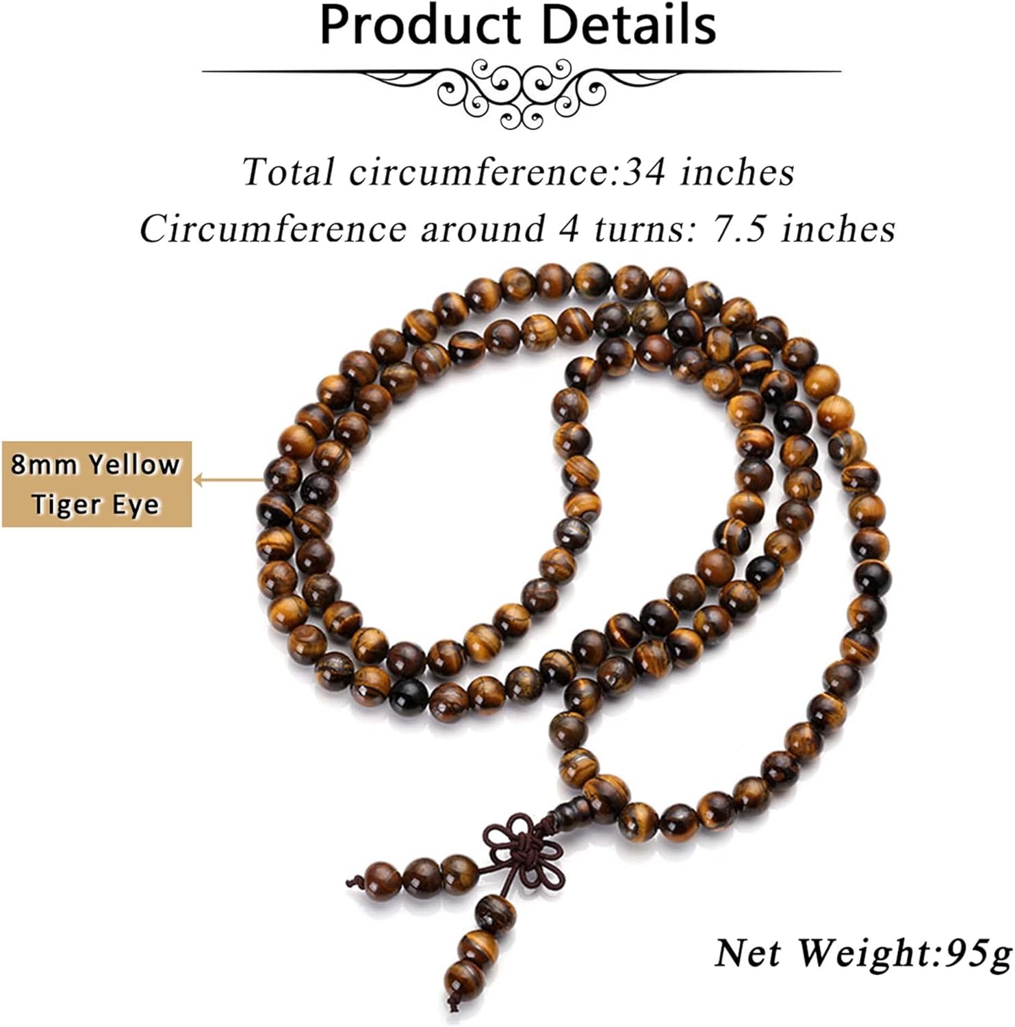 Jovivi Tibetan 6mm 8mm 108 Natural Tiger Eye Gemstone Beads Prayer Mala Bracelet Necklace