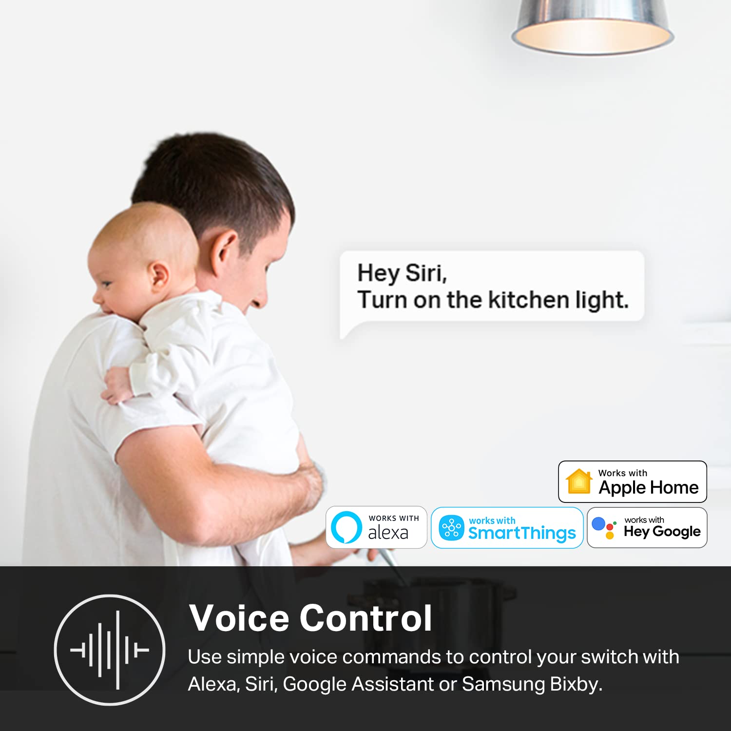 【Apple HomeKit Support】This Apple HomeKit compatible smart switch fully integrates into your Apple ecosystem, just ask Siri to turn on/off the lights in your home. (Apple HomeKit remote control requires an additional networked Apple device at home such as a HomePod or Apple TV.)