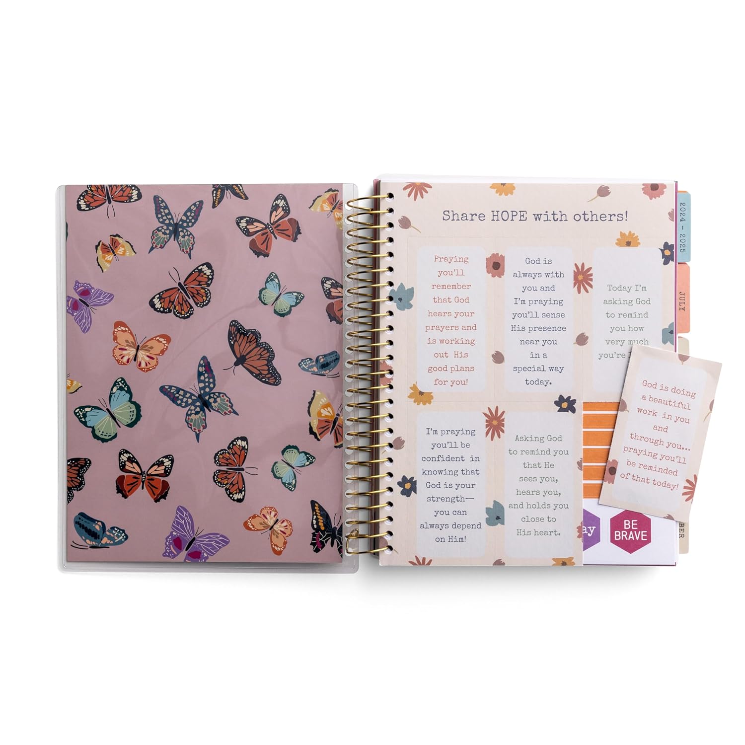 Product Features:18-month planner is printed on premium quality paper. It begins in July 2023 – December 2024 is great for academic school year planning whether you’re a student or teacher or keeping track of busy family schedules. It has an interior pocket page for homework, lesson plans, Bible study notes, or to do lists.This durable hardcover planner has a continuous metallic spiral binding, a lay-flat design for easy writing. The cover and tabs are laminated and it’s the perfect 7 x 9 inch size.Sturdy laminated monthly tabs for quick reference and easy planning. You’ll be inspired by monthly Bible verses in this agenda Planner. Use the 6 perforated pass-along notes to share HOPE with others.Monthly & weekly planning pages are followed by a notes page for note-taking, assignments, creative doodles or write down your favorite Bible Verse, prayer requests, maybe even journal.Personalize your spiral planner with 3 pages of planner sticker labels and give a little extra attention to important scheduling, appointment reminders, and special dates.