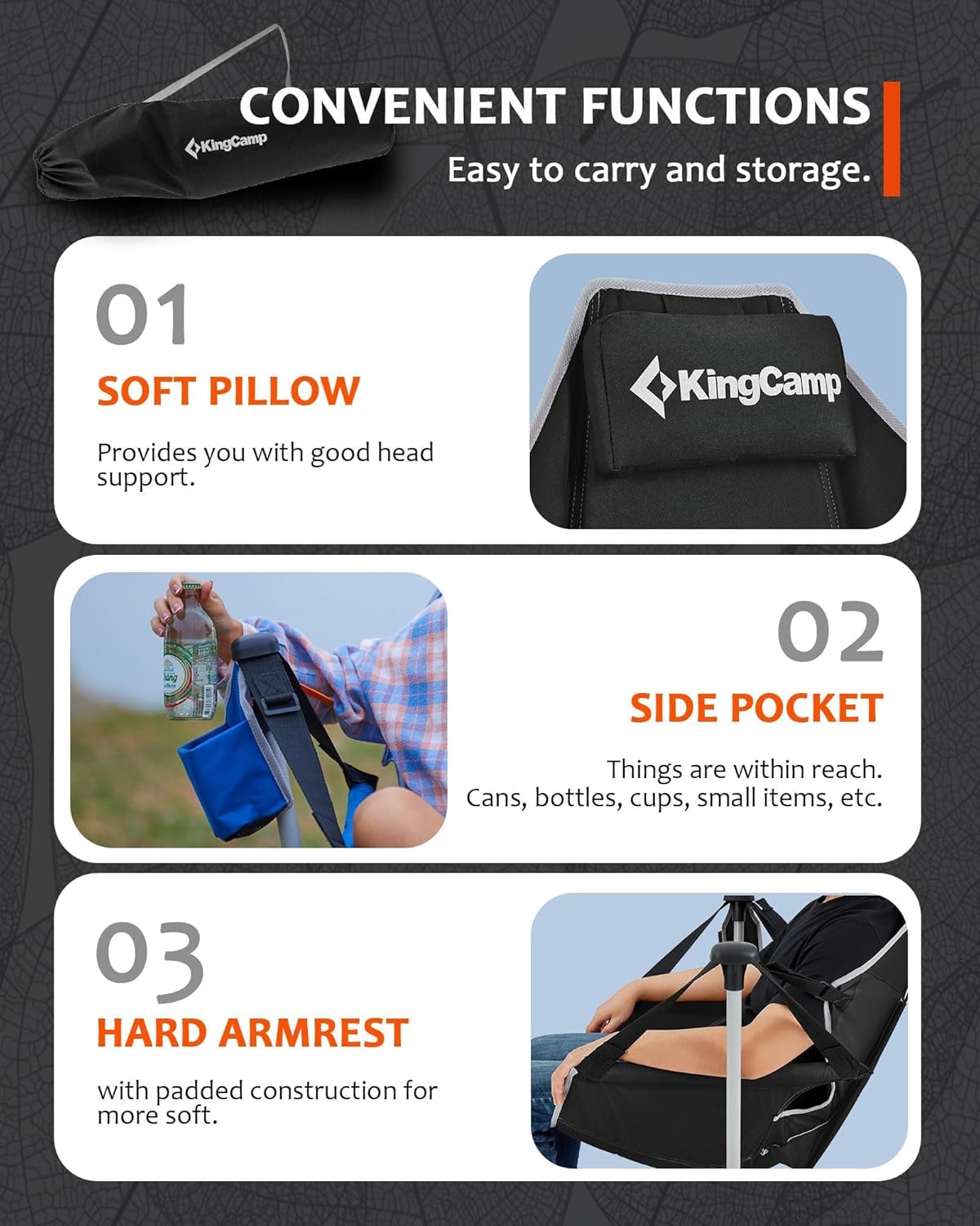 12 reviews for KingCamp Camping Chairs, Oversized Hammock Chairs, Folding Rocking Chairs, Aluminum Adjustable Back Swing Chairs, Chair with Removable Footrest Pillow Cup Holder for Outdoor Beach Lawn