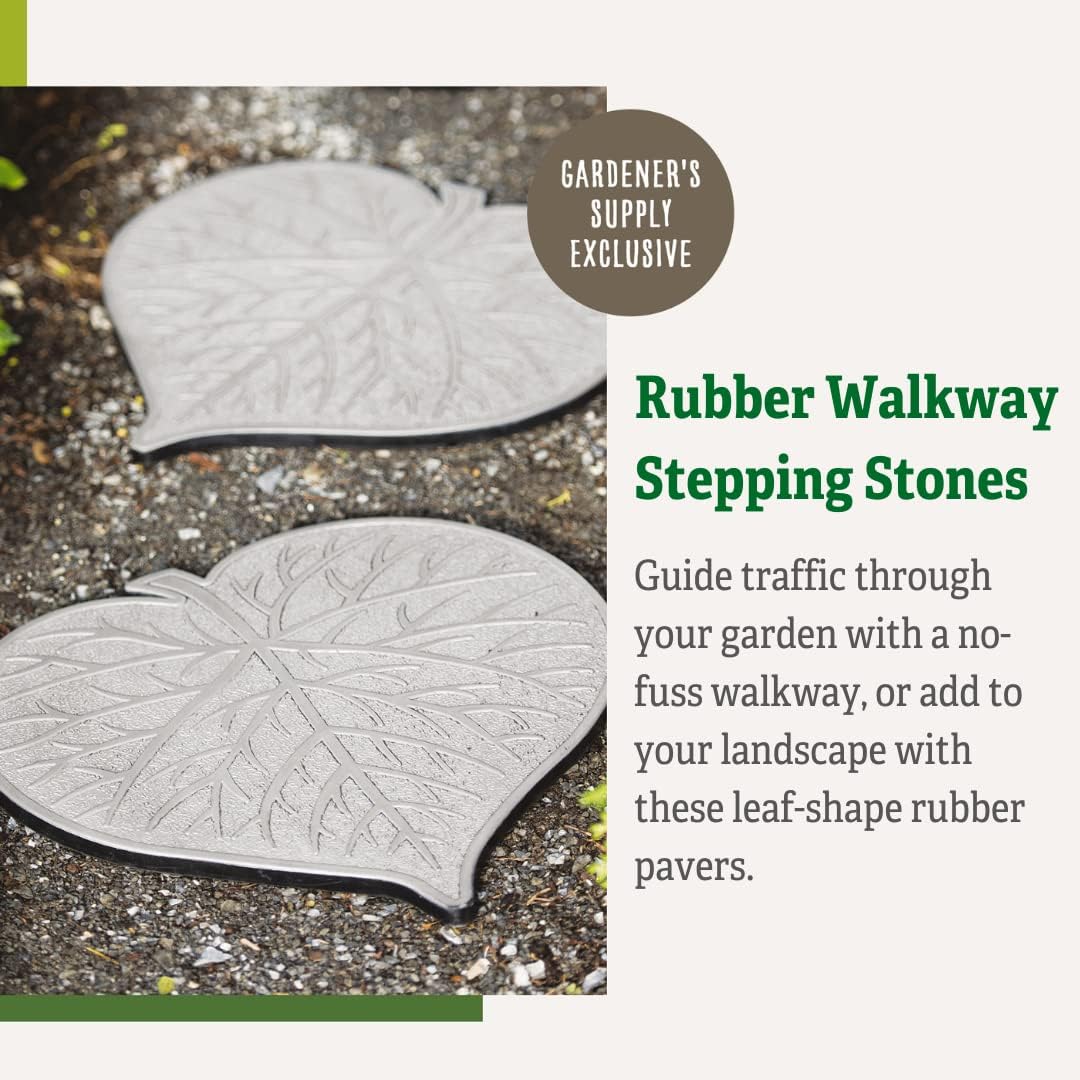 HIGH QUALITY & SUSTAINABLE: Gardeners Supply Company Exclusive Our Outdoor Rubber stepping stone is built to last. Made with blended natural & recycled rubber that is highly sustainable and helps our environment thru recycling. This material is known for its tough durable quality that will last all types of extreme weather. With a textured, anti-slip surface, they’ll provide a safer path through grassy areas and won’t chip or crack for years, unlike the usual DIY Garden stones.
