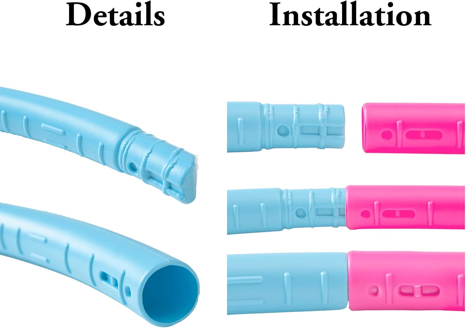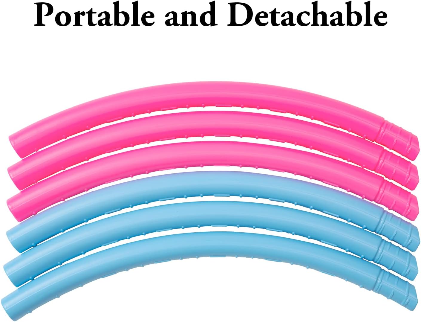 ADJUSTABLE SIZE–This kid exercise hoop can be adjusted differently according to the size you want. It is recommended to adjust to 5 sections(24‘’/0.44lb) and 6 sections (28‘’/0.52lb). The Sections are very easy to snap together and take apart, easy to store, save space