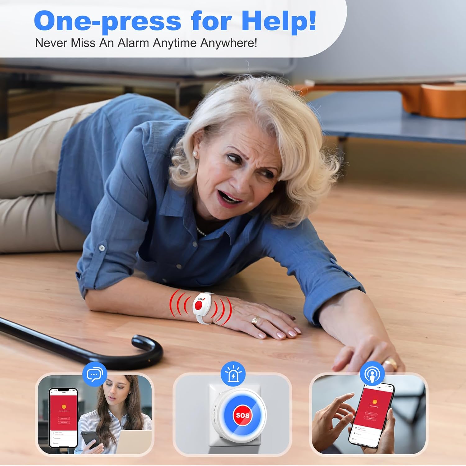 Life Alert Systems for Seniors No Monthly Fee Wi-Fi APP Control Elderly Alarm Call Button Caregiver Pager Panic Alarm for 1 Call Button 1 Watch Button 1 Receiver(Only Supports 2.4GHz Wi-Fi)