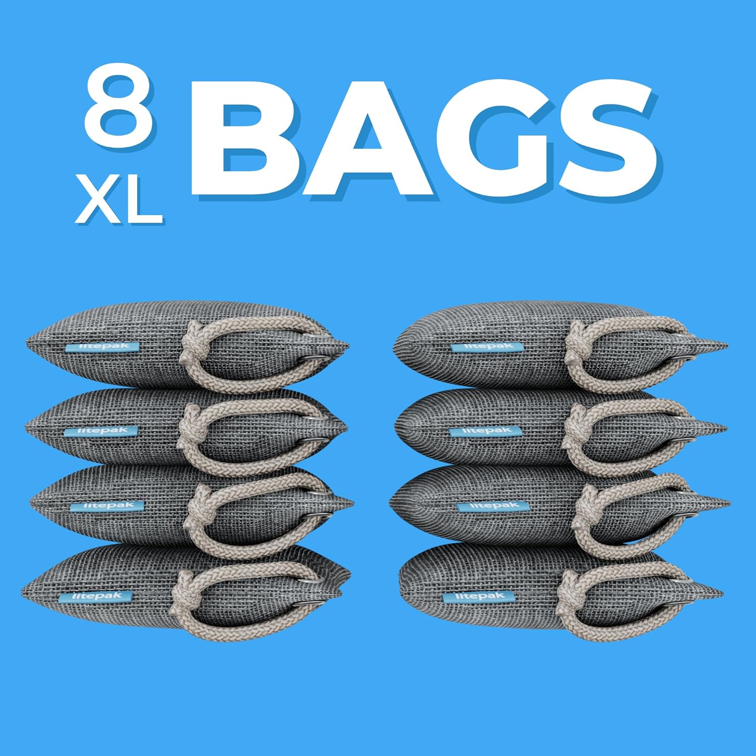 Litepak Activated Charcoal Bags Odor Absorber, (8 Pack, Large), Bamboo Charcoal, Natural Car Air Purifier, Closet Deodorizer, and Odor Eliminator For Home (8x200g)