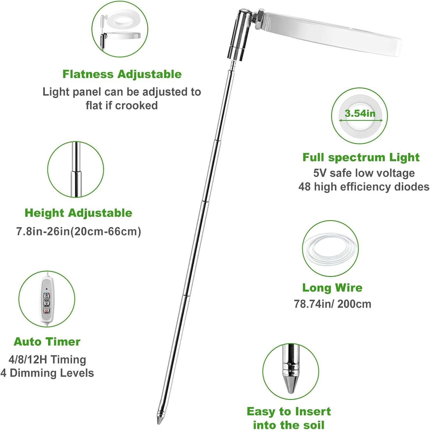 Brighter Plant Light with 4 Dimmable Levels: Our grow light has more new technology LED diodes which makes it brighter and more efficient. Also it has 4 brightness settings (25%-50%-75%-100%), to meet each plant’s lighting requirements at different stages, without worrying about burning your plant