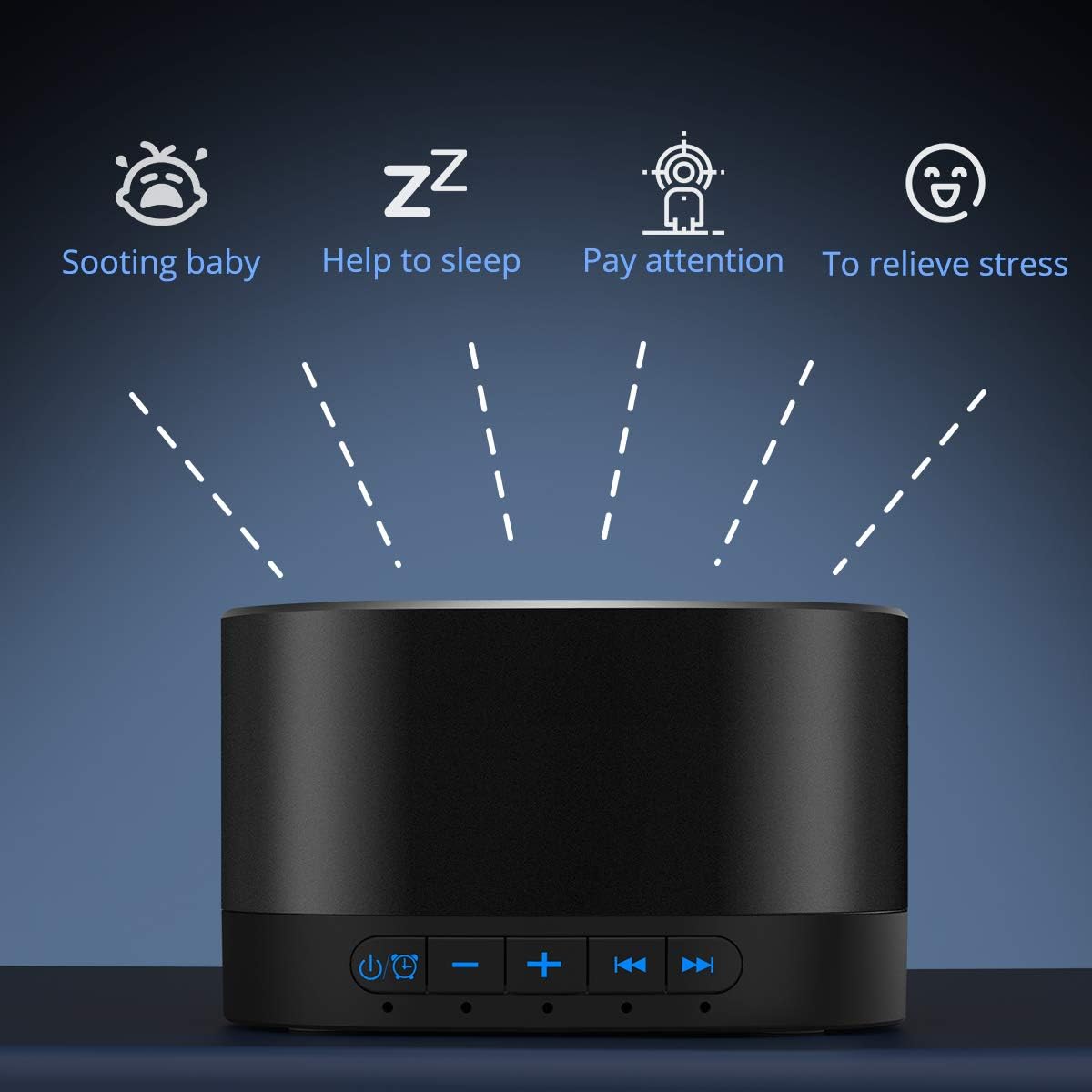 Automatically restores the previous volume, sound and time.Intelligent technology, user-friendly timer setting. It is portable for home, office or travel.