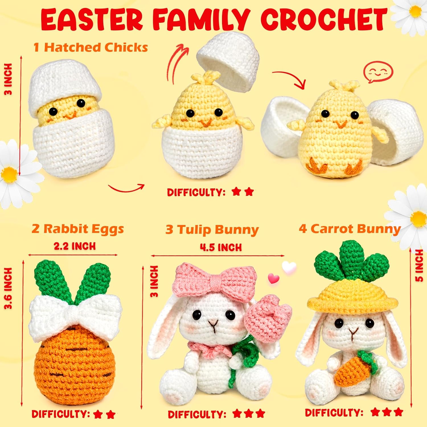 🐣Perfect Kit: Our Easter family crochet set suitable for all ages, a great kit for anyone interested in learning crochet. Create these little stuffed cuties and share them with your family, friends, and lovers. It’s great presents for birthdays, New Year or other holiday.