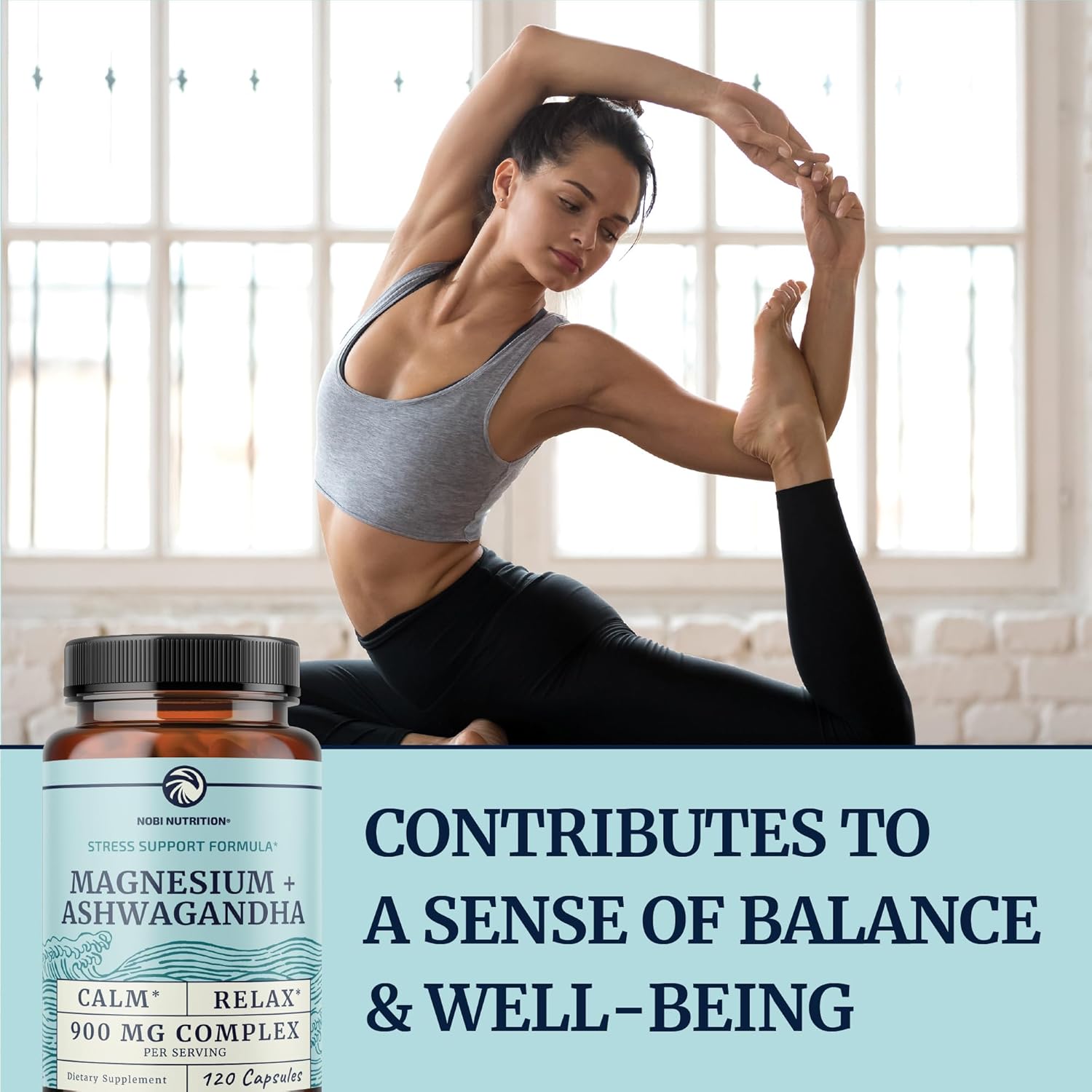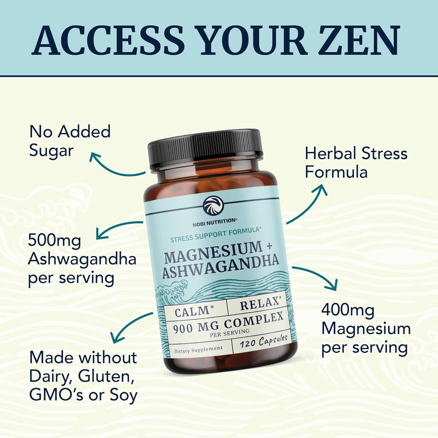 Magnesium Ashwagandha | Calming Magnesium Supplement for Adults | Relax, Rest, Calm Mood & Sleep Support | Mag Citrate & Oxide 400 mg + Ashwagandha 500 mg | Muscle Health & Stress Relief | 120 Ct