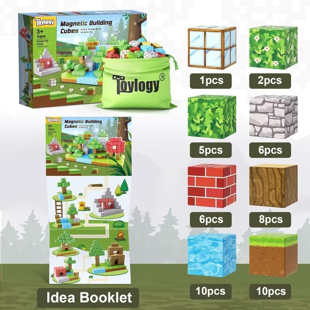 Magnetic Blocks-Build Mine Magnet World Edition, Magnetic Toys for Boys & Girls Age 3-4 4-5 6-8,STEM Montessori Sensory Toys for Toddlers Gifts for 3+ Years Old,48PCS Fidget 1″ Cubes Construction Toy