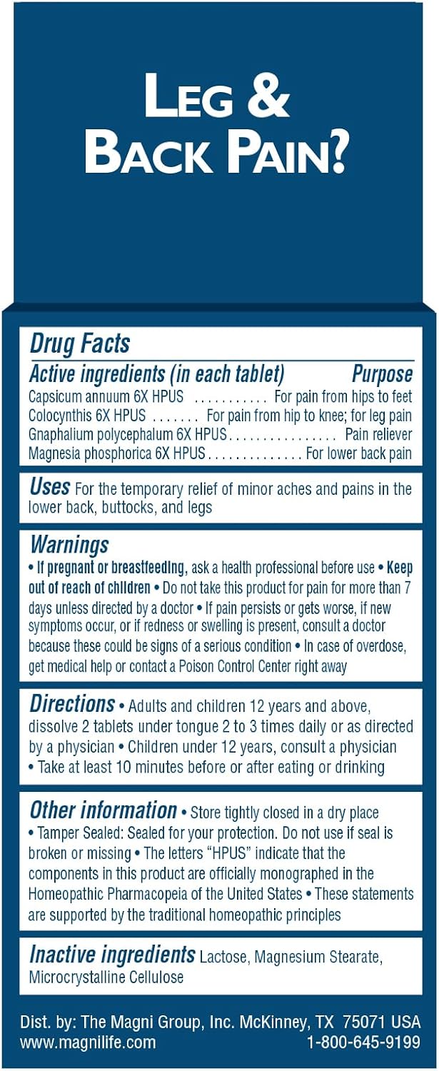 MagniLife Leg & Back Pain Relief, Fast-Acting Pain Relief, Naturally Soothe Burning, Tingling and Stabbing Pains, Symptomatic or Preventative, 125 Quick-Dissolve Tablets
