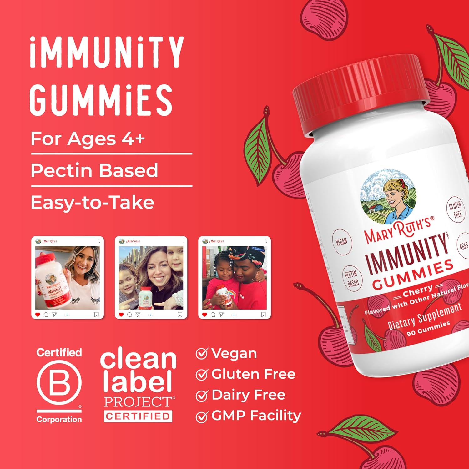 Mary Ruth’s 5-1 Immunity Gummies with Elderberry for Kids & Adults | Cherry | Pectin Based | Vegan | 90 Count