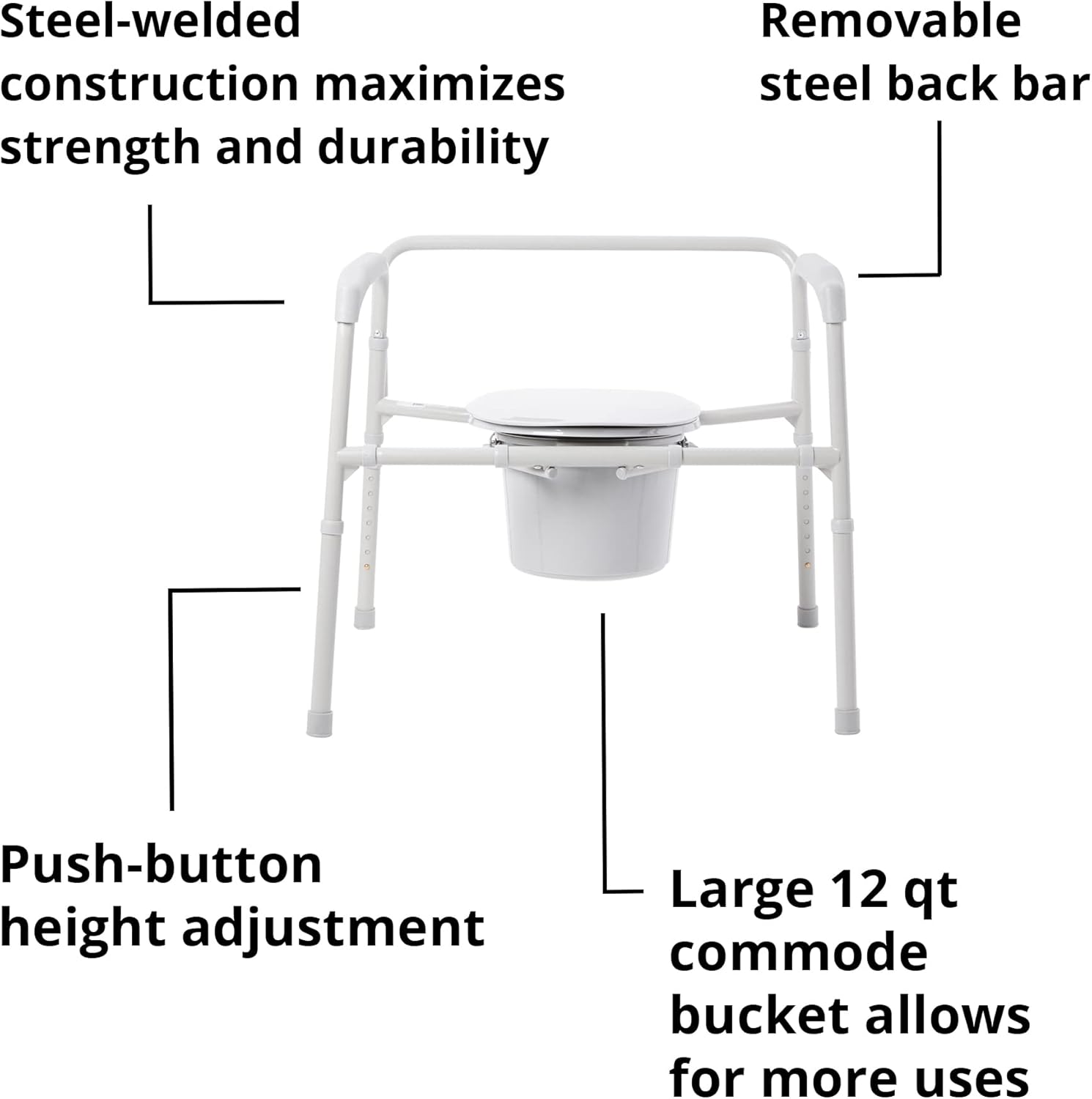 McKesson Heavy-Duty Folding Bariatric Commode Chair with 12 qt Bucket, 650 lbs Weight Capacity, 13 3/4 in Seat Width, 1 Count