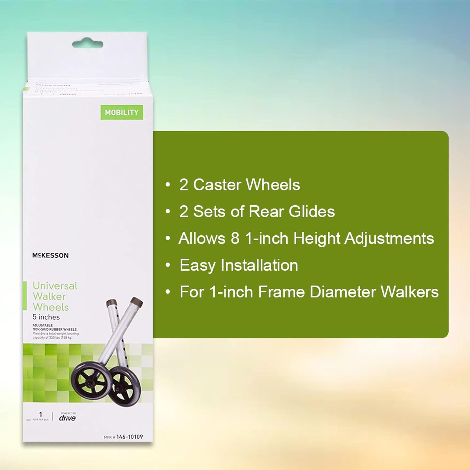 McKesson Universal Walker Wheels, Adjustable, 5 in Caster Wheels, 1 Pair