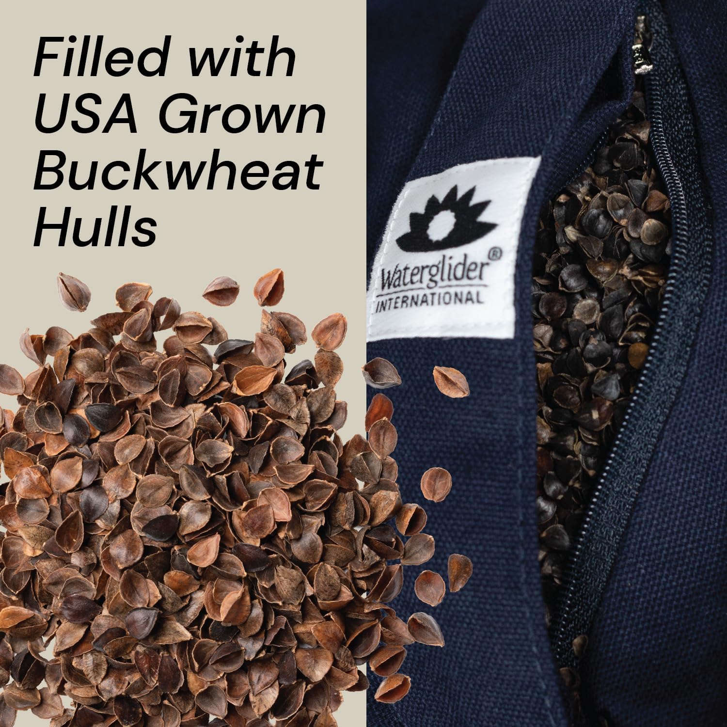 Made in the USA with USA Grown Buckwheat Husks – We have invested in the tools and machinery to create jobs for former refugees in Washington State. When you purchase a Waterglider product, you are supporting immigration and refugee settlement in the USA.