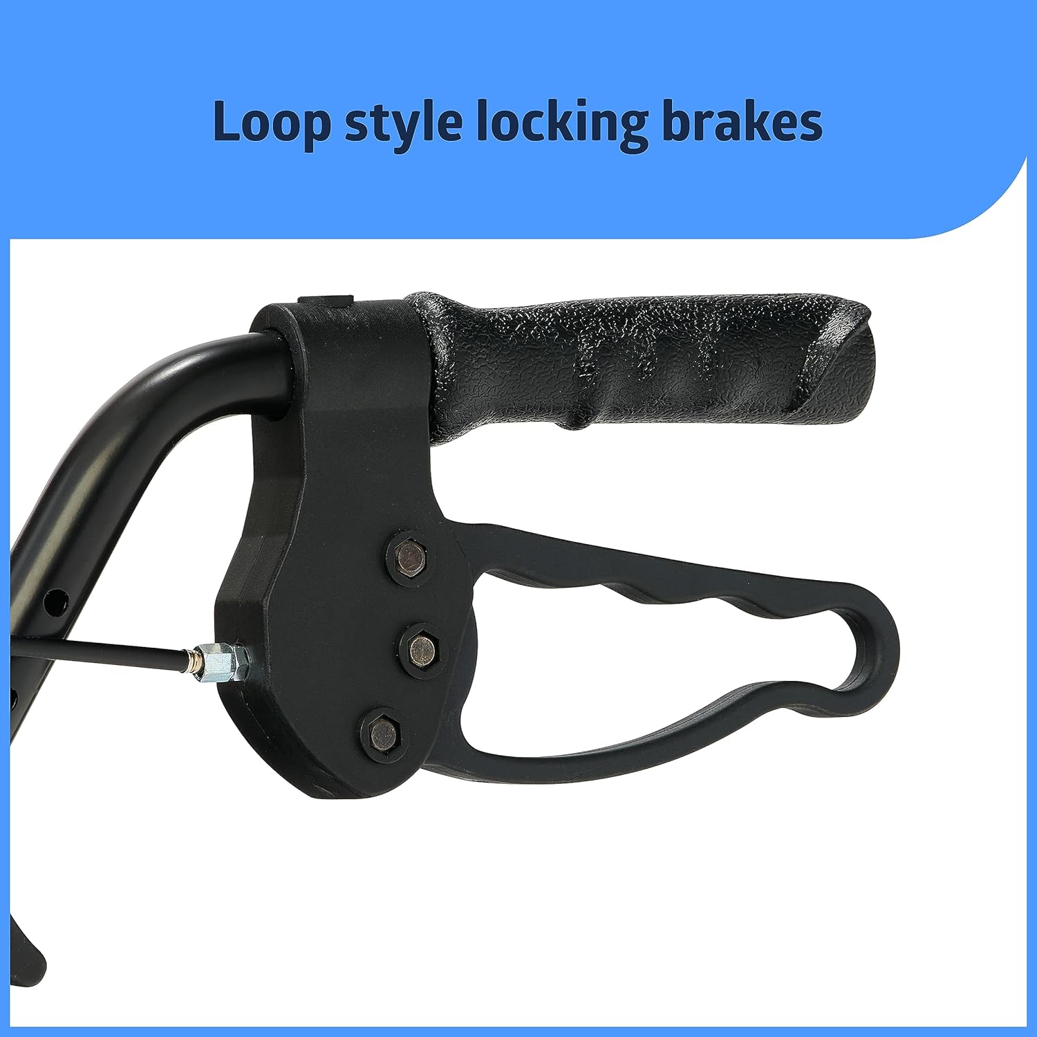 BARIATRIC steel rollator features a reinforced design and 8″ premium wheels to maneuver over both hard and soft surfaces with loop-style locking brakes for improved freedom and mobility.