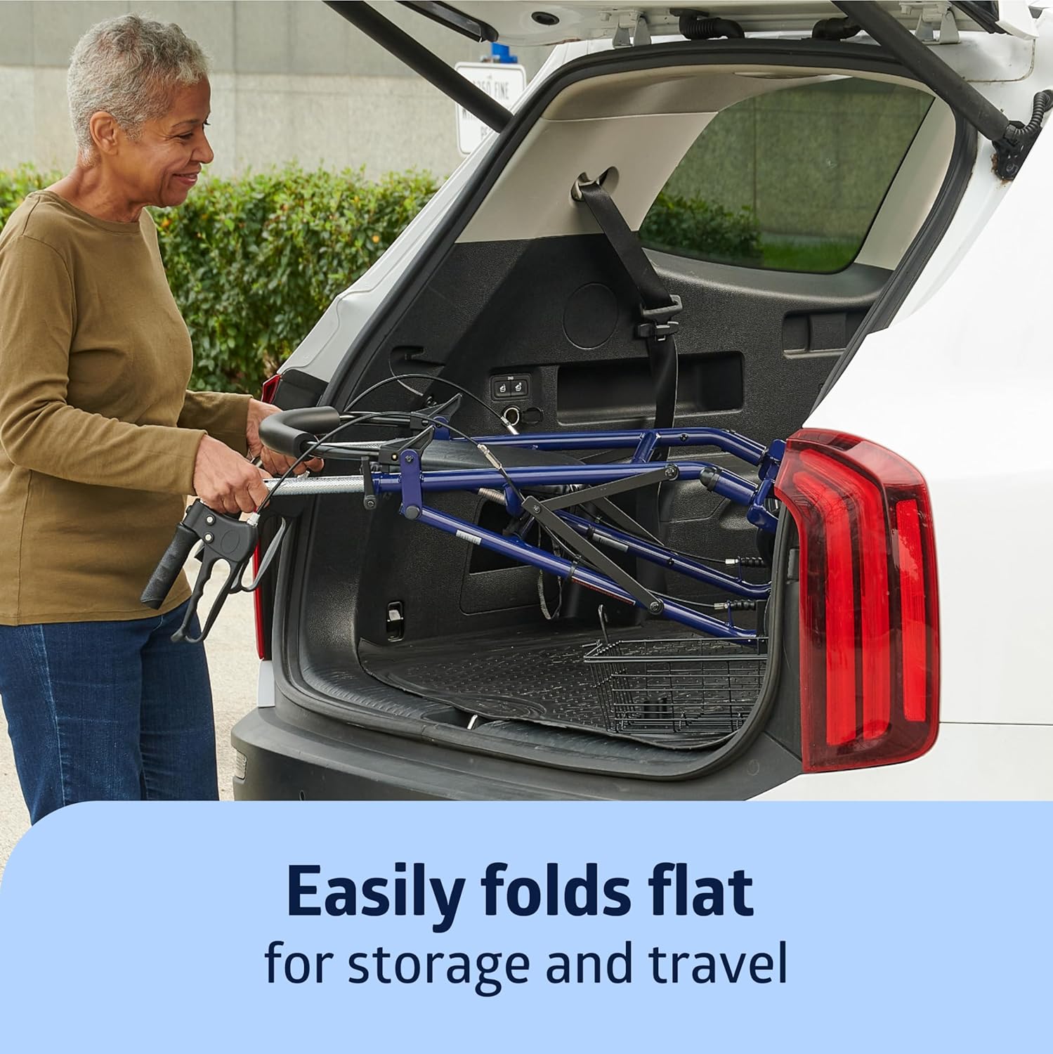 Trusted by healthcare workers and hospitals everywhere, Medline’s steel rollator walker with padded seat and backrest is the perfect support for seniors, adults and elderly, and those who have mobility impairments. Available at a great value, this rollator is equipped with 8″ wheels to easily move from indoors to outdoors smoother than ever before. Features 12×12″ black padded seat, weighs 17 lbs., supports up to 300 lbs, and comes in a blue steel frame. This walker is great for adults and seniors and those with limited movement ability. Fit with easy-to-remove wire basket for convenient storage. To engage brakes, simply squeeze the easy-grip handles. To keep wheels in a safe, locked position, push grip handles to the down position. This prevents the rollator from moving when standing still, sitting down or standing up. Effortlessly customize your walker by flipping up the backrest for more room, or adjust the height of the handles to your perfect fit.