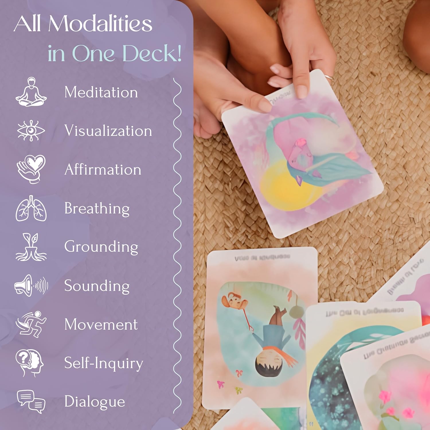 COMPREHENSIVE MEDITATION ACCESSORIES: Exercises include meditation, guided visualization, positive affirmations, breathwork, grounding, sounding, movement and self-inquiry. Versatile enough to use as a daytime activity or as meditation sleep cards for kids to support their bedtime routine.